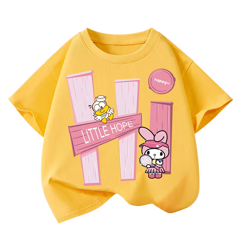 - Áo thun ngắn tay 100% cotton cho bé gái, kiểu dáng thời thượng, phong cách mùa hè mới, áo kiểu dáng rộng tay lửng cho trẻ lớn.