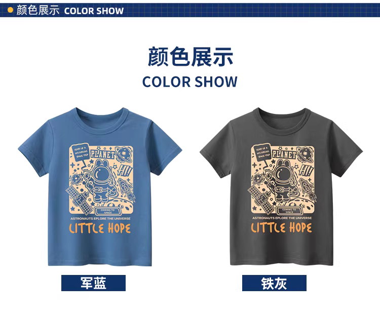 - Áo thun ngắn tay bằng cotton nguyên chất cho bé trai, trang phục mùa hè cổ tròn cổ điển, thiết kế phi hành gia sành điệu cho bé trai, áo mỏng hợp thời trang và thời trang.