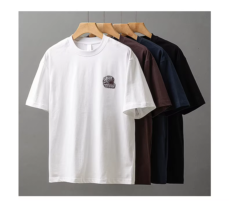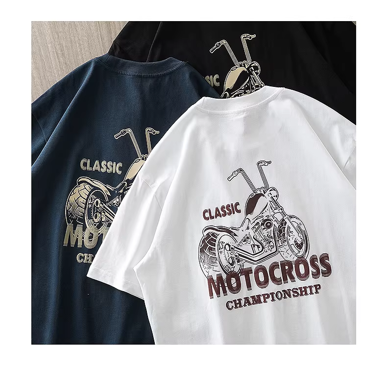 - Áo thun ngắn tay bằng cotton nguyên chất hạng nặng dành cho nam, phong cách mùa hè mới, thương hiệu thời thượng của Mỹ, in hình xe máy, dáng rộng, áo thun cổ tròn.
