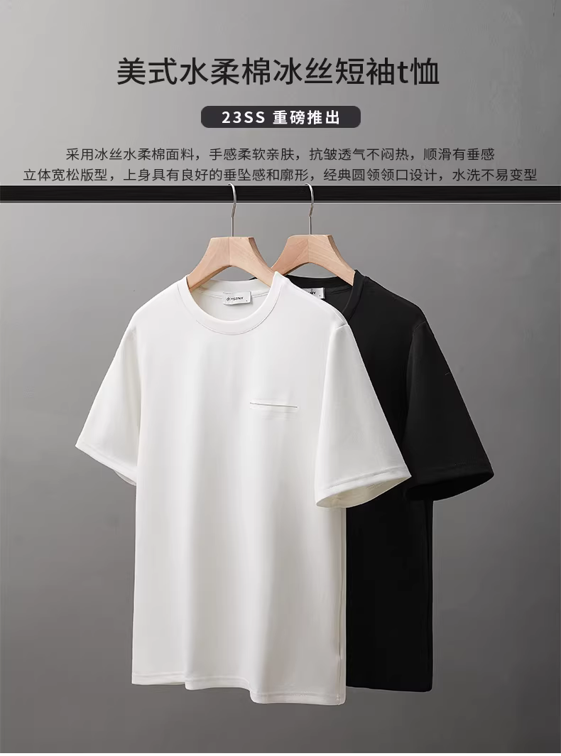 Áo thun ngắn tay bằng vải cotton mềm kiểu Mỹ OMZM dành cho nam, dáng rộng mùa hè, tay lửng, áo thun màu trơn thoáng khí hợp thời trang.