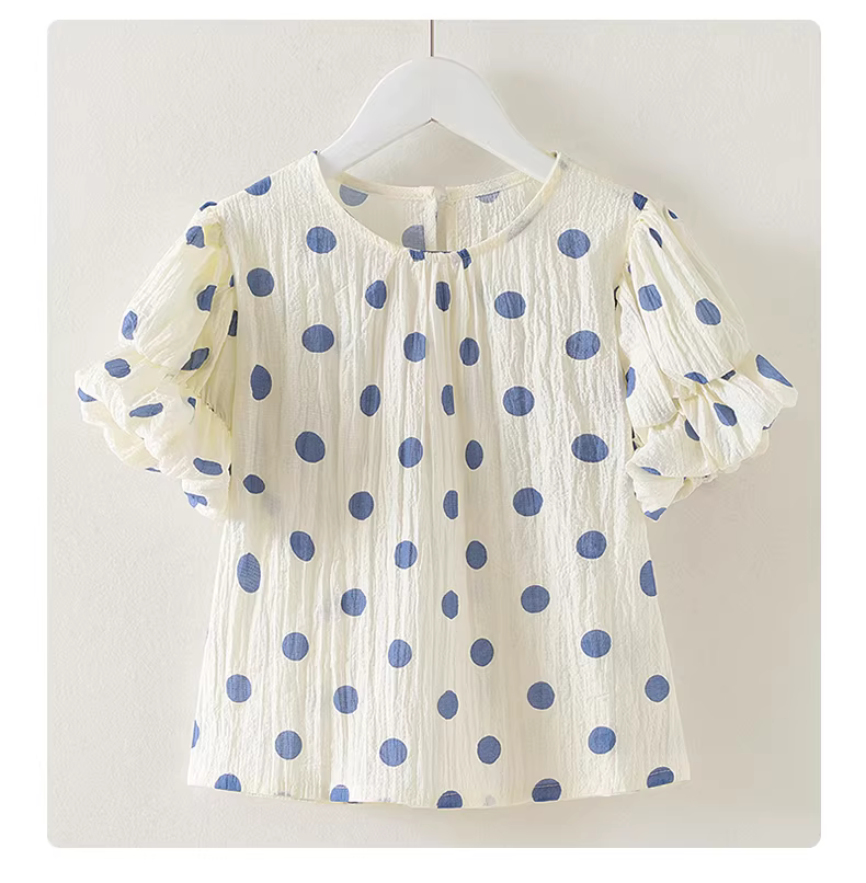 - Áo thun ngắn tay chấm bi phong cách Hàn Quốc dành cho nữ 2025 kiểu dáng mới áo dáng rộng giản dị dành cho các cô gái lớn tuổi mặc mùa hè mỏng tay phồng