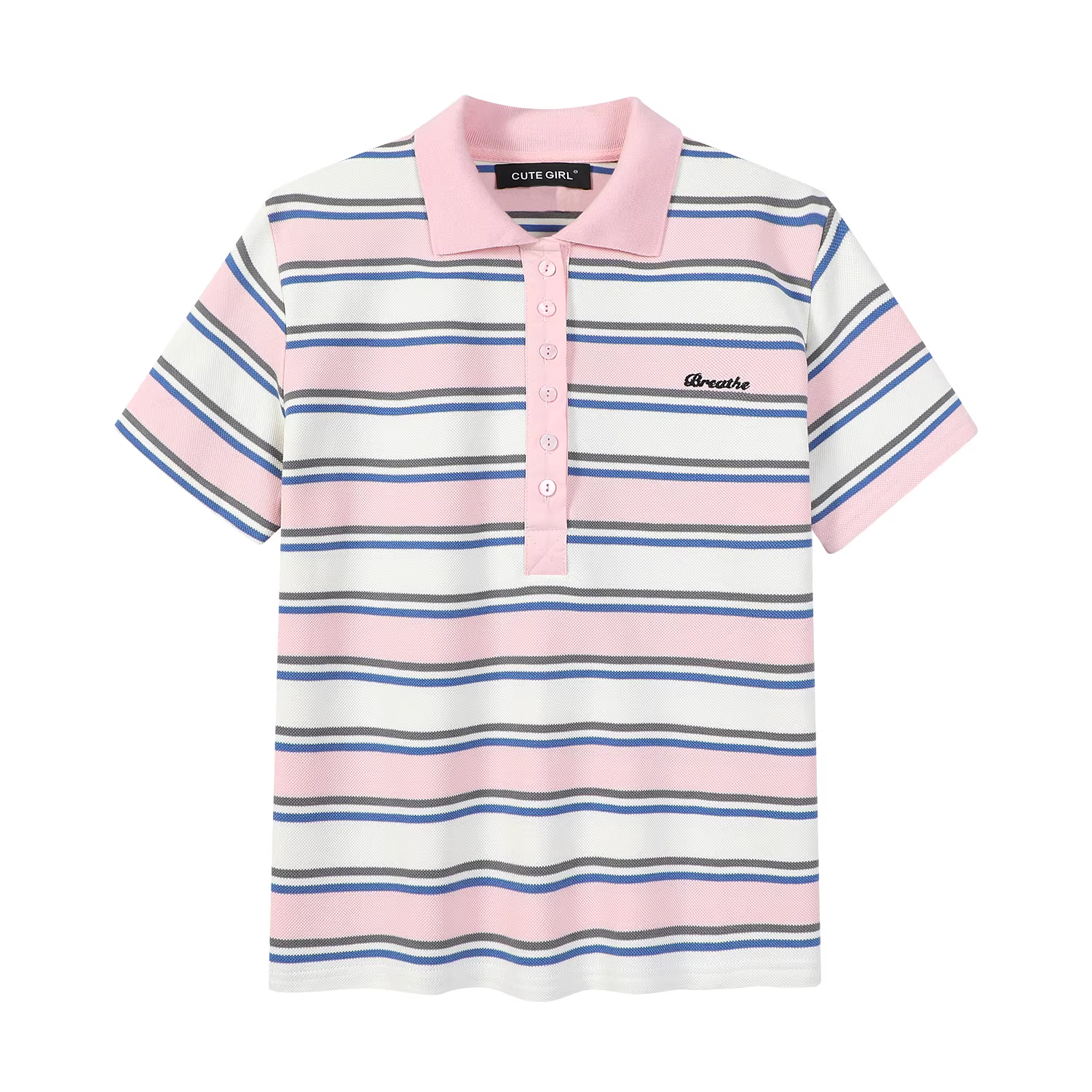 - Áo thun ngắn tay cổ polo sọc phối màu phong cách Hàn Quốc dành cho nữ, thiết kế mùa hè, dáng rộng, giản dị, đa năng
