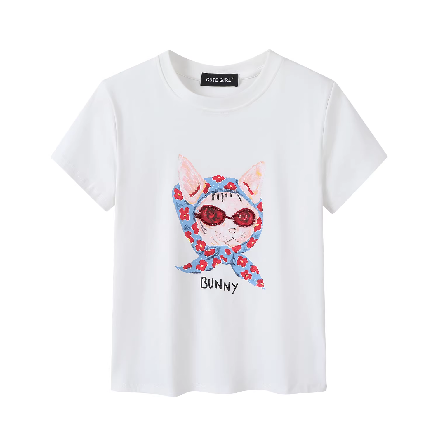 Áo thun ngắn tay cổ tròn in hình siêu phong cách của CuteGirl dành cho nữ, áo thun dáng ôm cao cấp đính cườm mùa hè