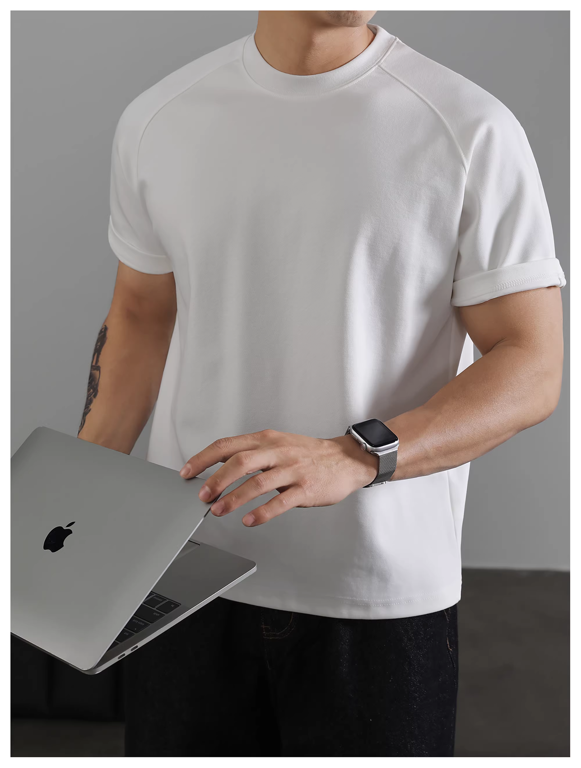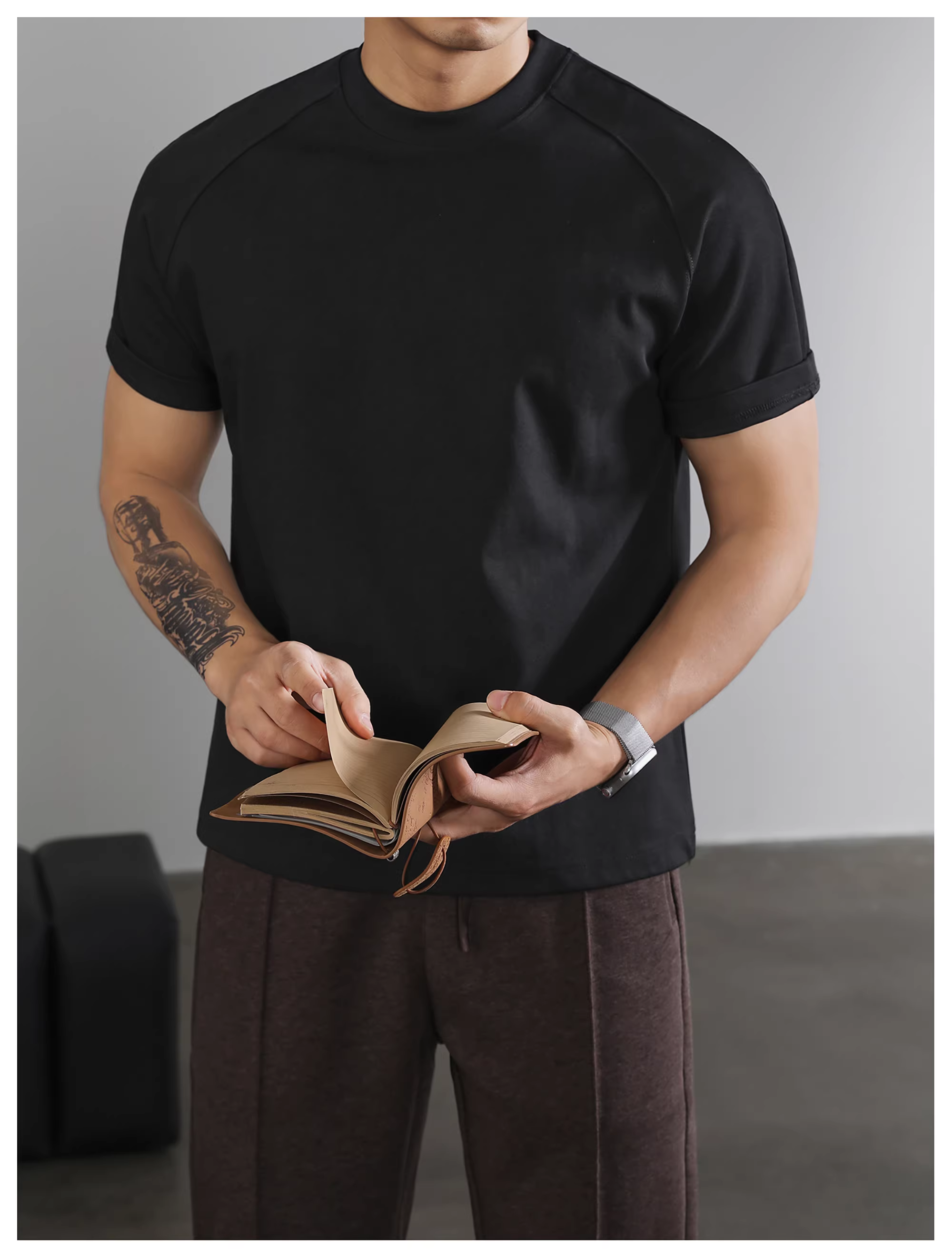 - Áo thun ngắn tay cổ tròn màu xám đậm LUUD dành cho nam giới áo sơ mi cơ bản giản dị hợp thời trang hàng đầu