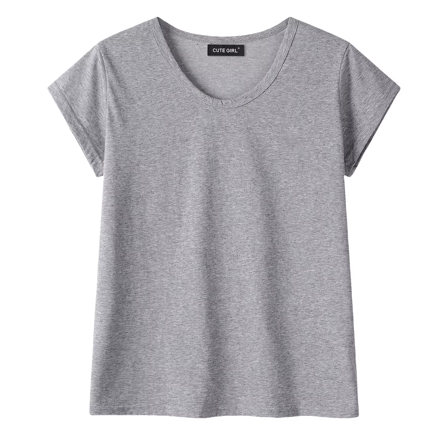 - Áo thun ngắn tay dáng rộng phong cách Hàn Quốc dễ thương dành cho nữ mùa hè đơn giản màu trơn cổ tròn