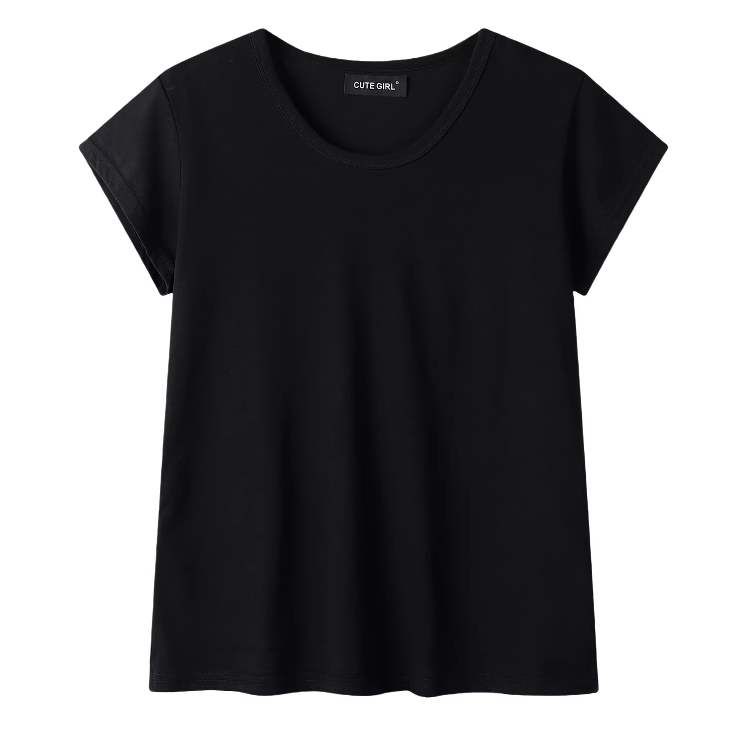 Áo thun ngắn tay dáng rộng phong cách Hàn Quốc dễ thương dành cho nữ mùa hè đơn giản màu trơn cổ tròn