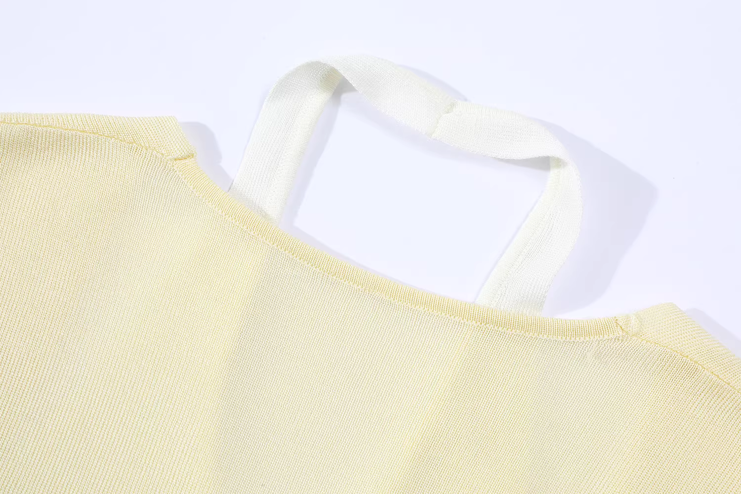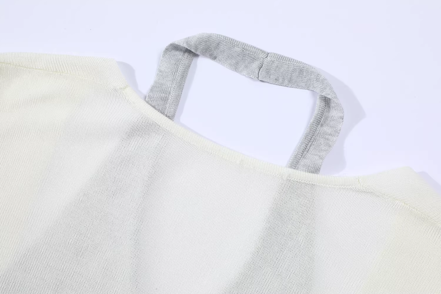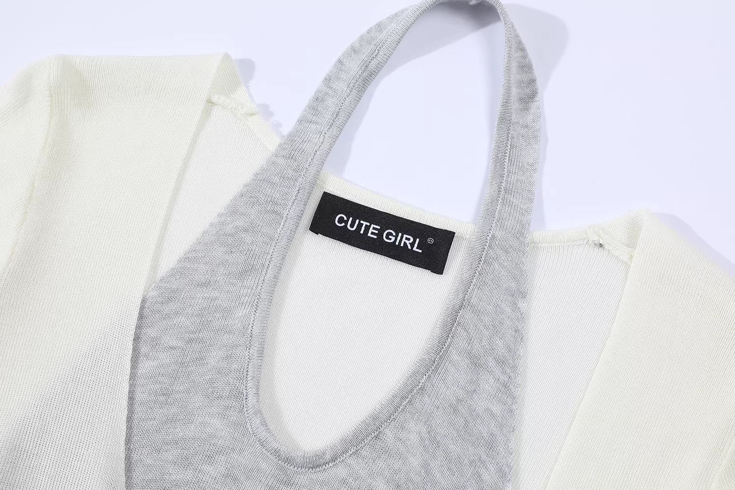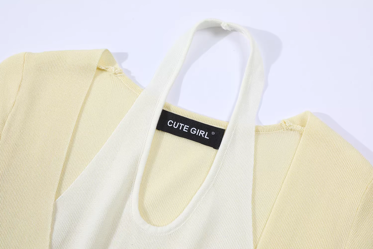 - Áo thun ngắn tay dệt kim cổ yếm xoắn độc đáo theo phong cách Hàn Quốc dành cho nữ, áo hai mảnh giả phối màu mùa hè