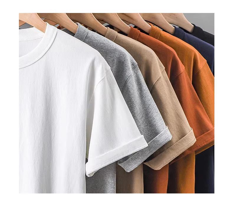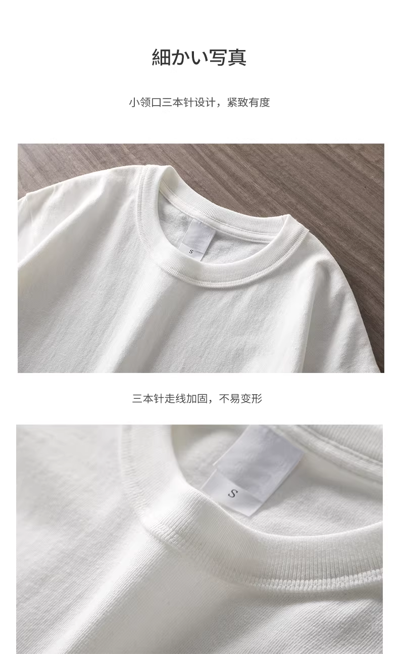 - Áo thun ngắn tay hạng nặng 320G kiểu Nhật Bản dành cho nam, mùa hè chất liệu cotton nguyên chất dày cổ nhỏ màu trắng tinh khiết kiểu Mỹ nửa tay.