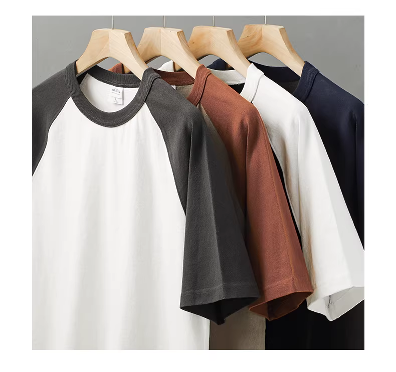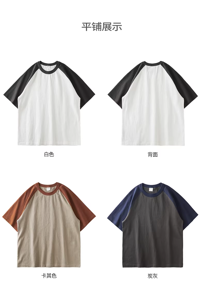 - Áo thun ngắn tay hạng nặng 400g kiểu Mỹ ba kim dành cho nam, kiểu mới mùa hè 2023, tay raglan phối màu, nửa tay bằng cotton nguyên chất.