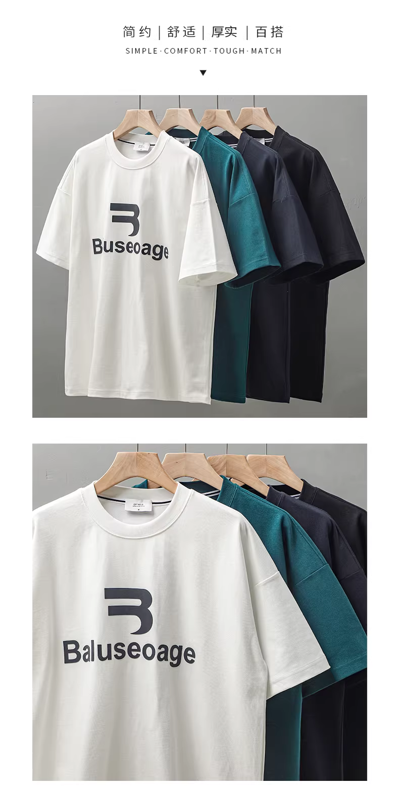 - Áo thun ngắn tay hạng nặng 400G phong cách Mỹ của OMZM dành cho nam, áo sơ mi cổ tròn bằng cotton nguyên chất mùa hè, áo nửa tay in hình thương hiệu thời thượng rộng rãi