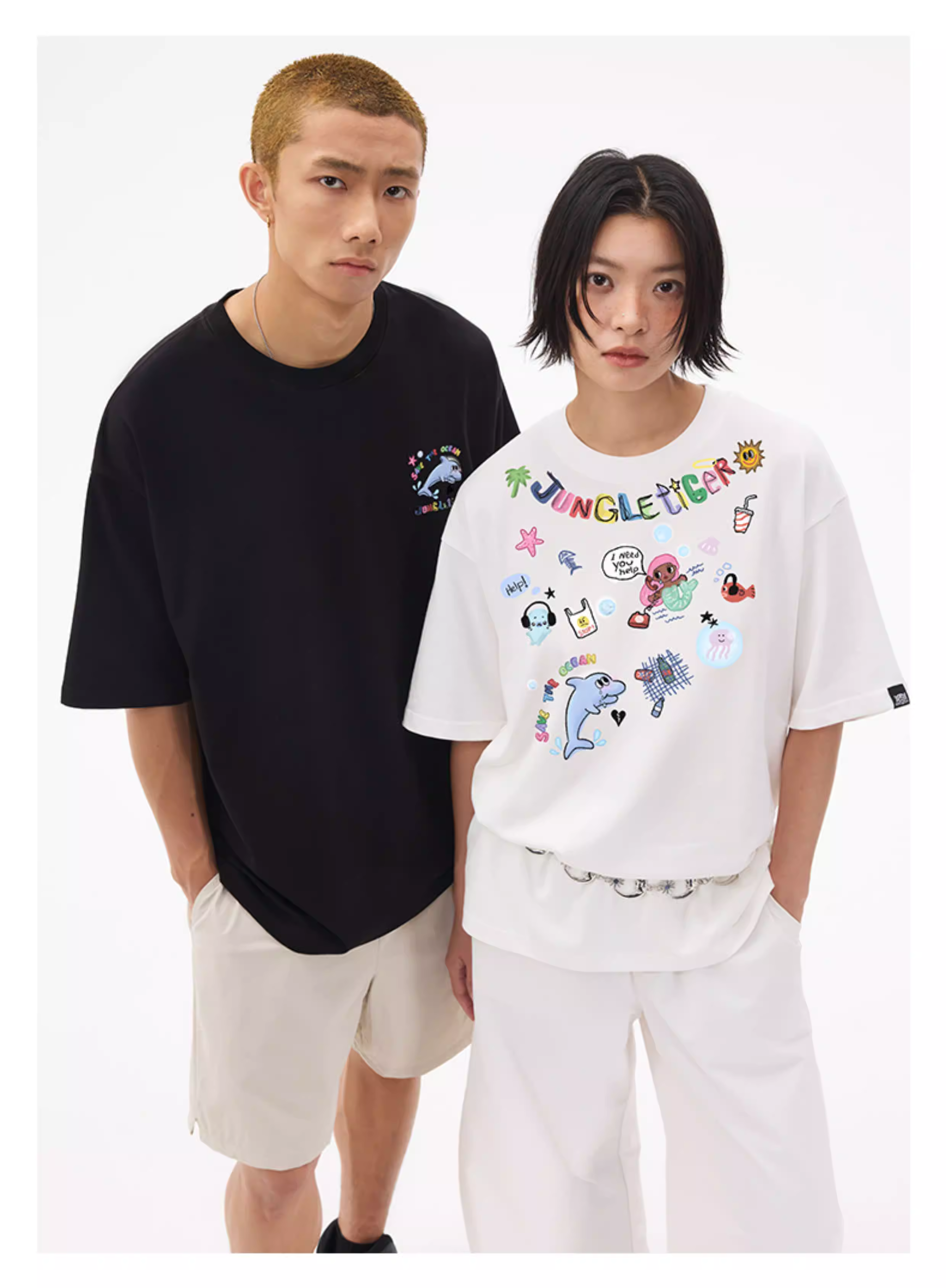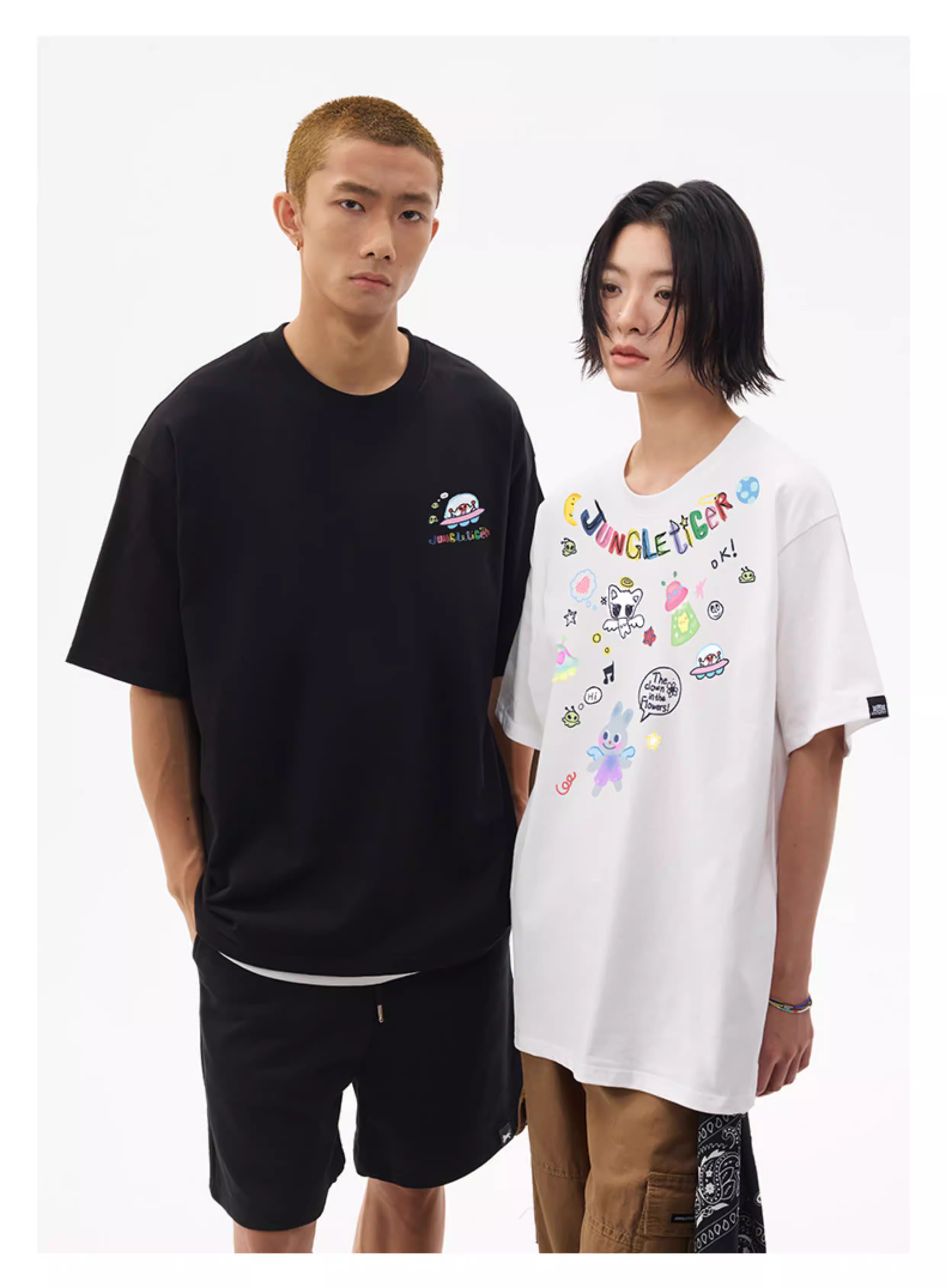 - Áo thun ngắn tay họa tiết graffiti hoạt hình hổ rừng dành cho nam mùa hè 2025 phong cách Mỹ, trang phục cặp đôi, áo trắng