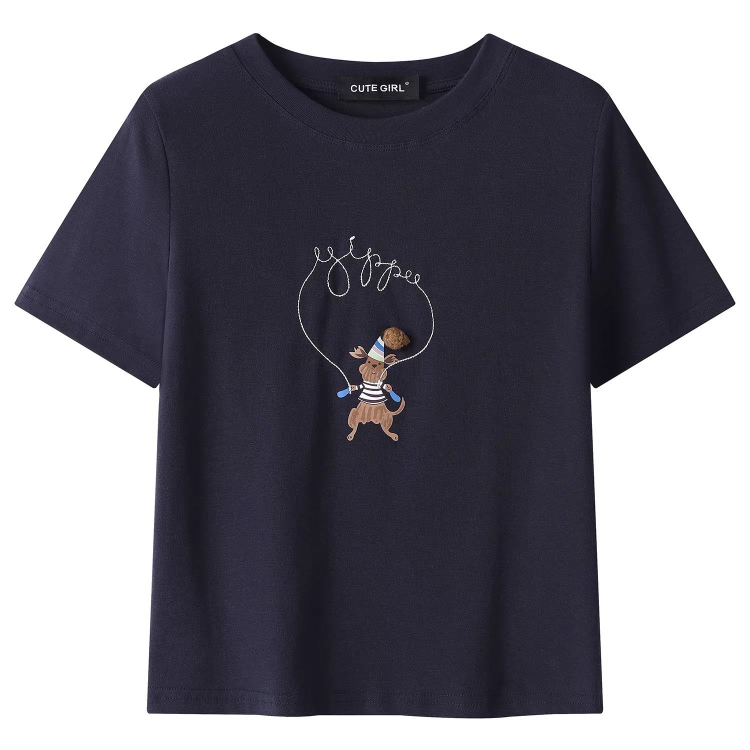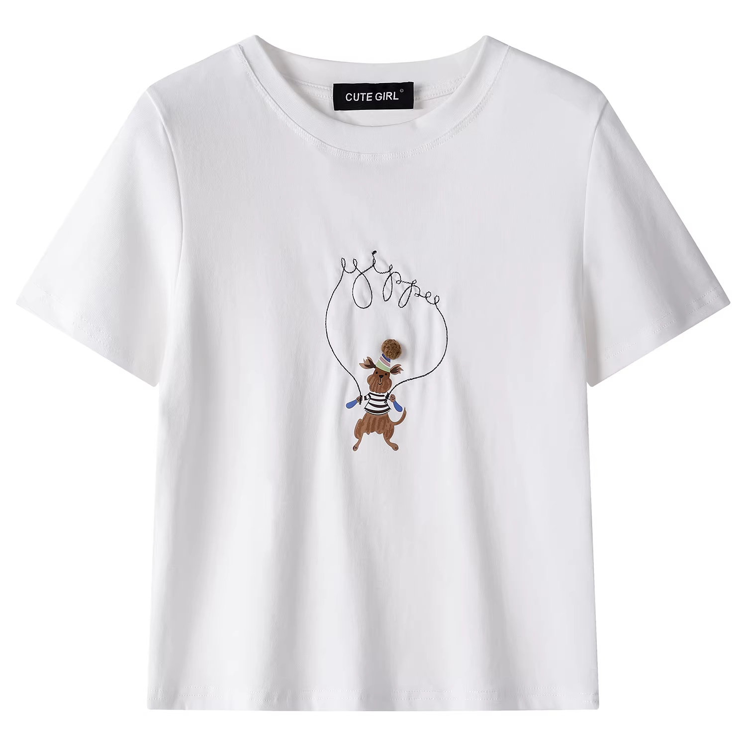 Áo thun ngắn tay in hình chó con dễ thương phong cách Hàn Quốc dành cho nữ, thiết kế mùa hè, áo đi làm độc đáo