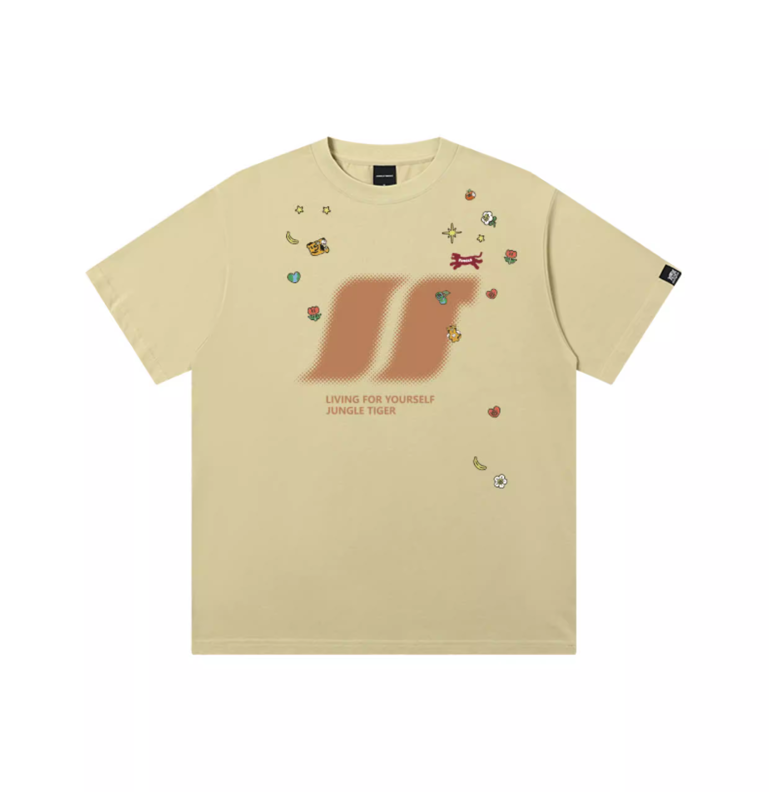 Áo thun ngắn tay in hình graffiti hổ rừng vui nhộn dành cho nam, kiểu cặp đôi mùa hè 2025, chất liệu dày 260g