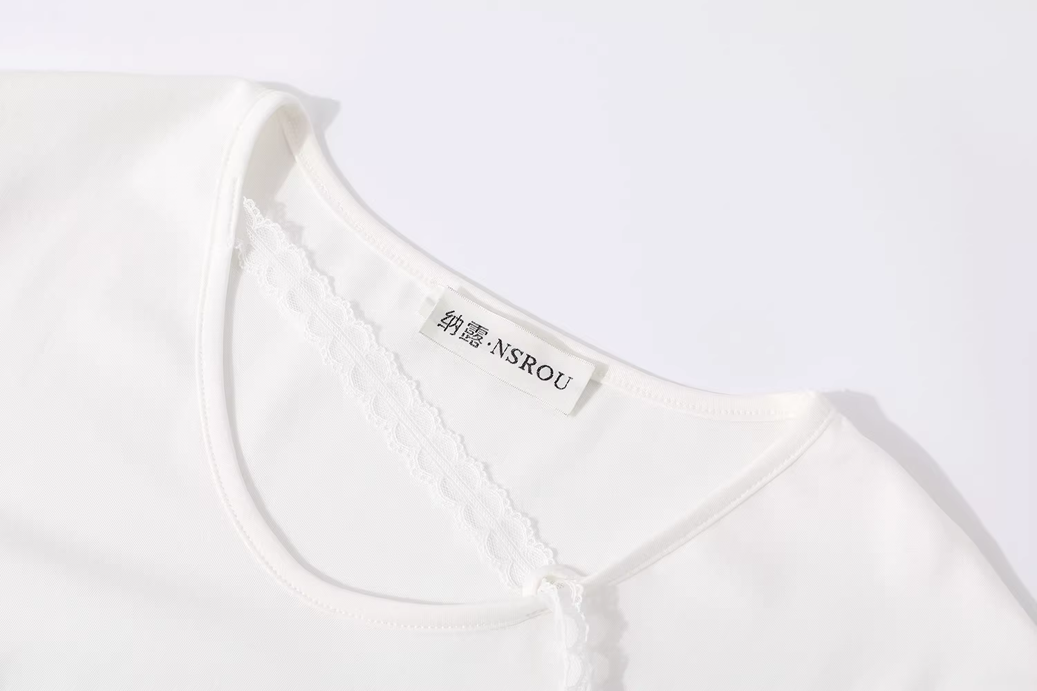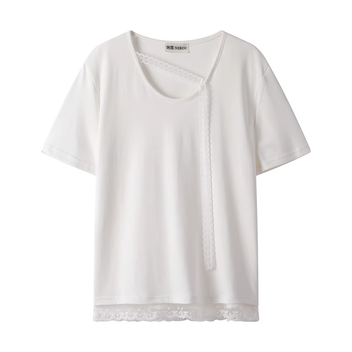 - Áo thun ngắn tay kiểu dáng độc đáo phối ren kiểu Hàn Quốc dành cho nữ mùa hè thiết kế mới độc đáo cổ chữ V