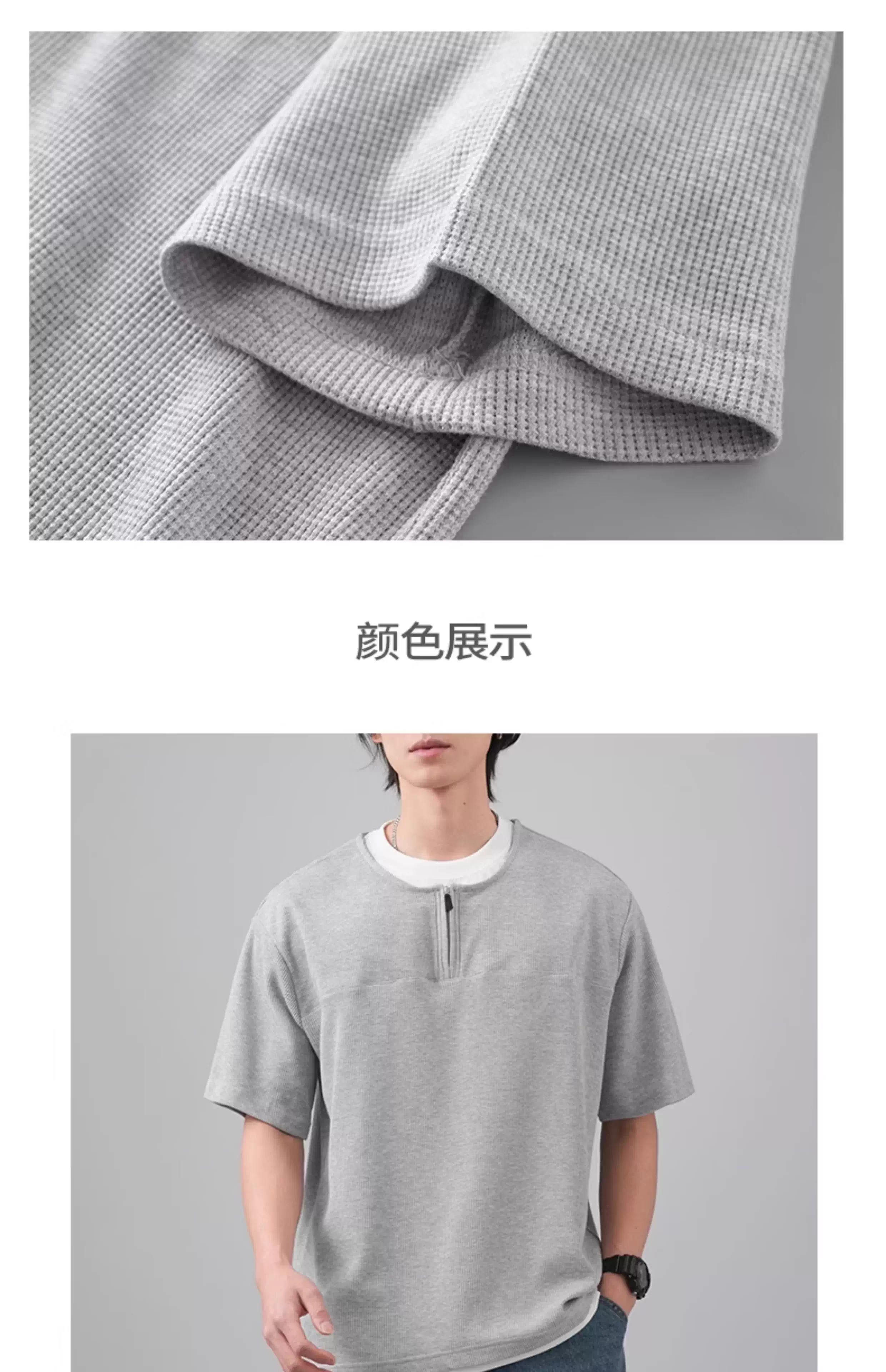 - Áo thun ngắn tay kiểu waffle hạng nặng OMZM240G dành cho nam, áo thun cặp đôi dáng rộng giả hai mảnh kiểu Mỹ mùa hè