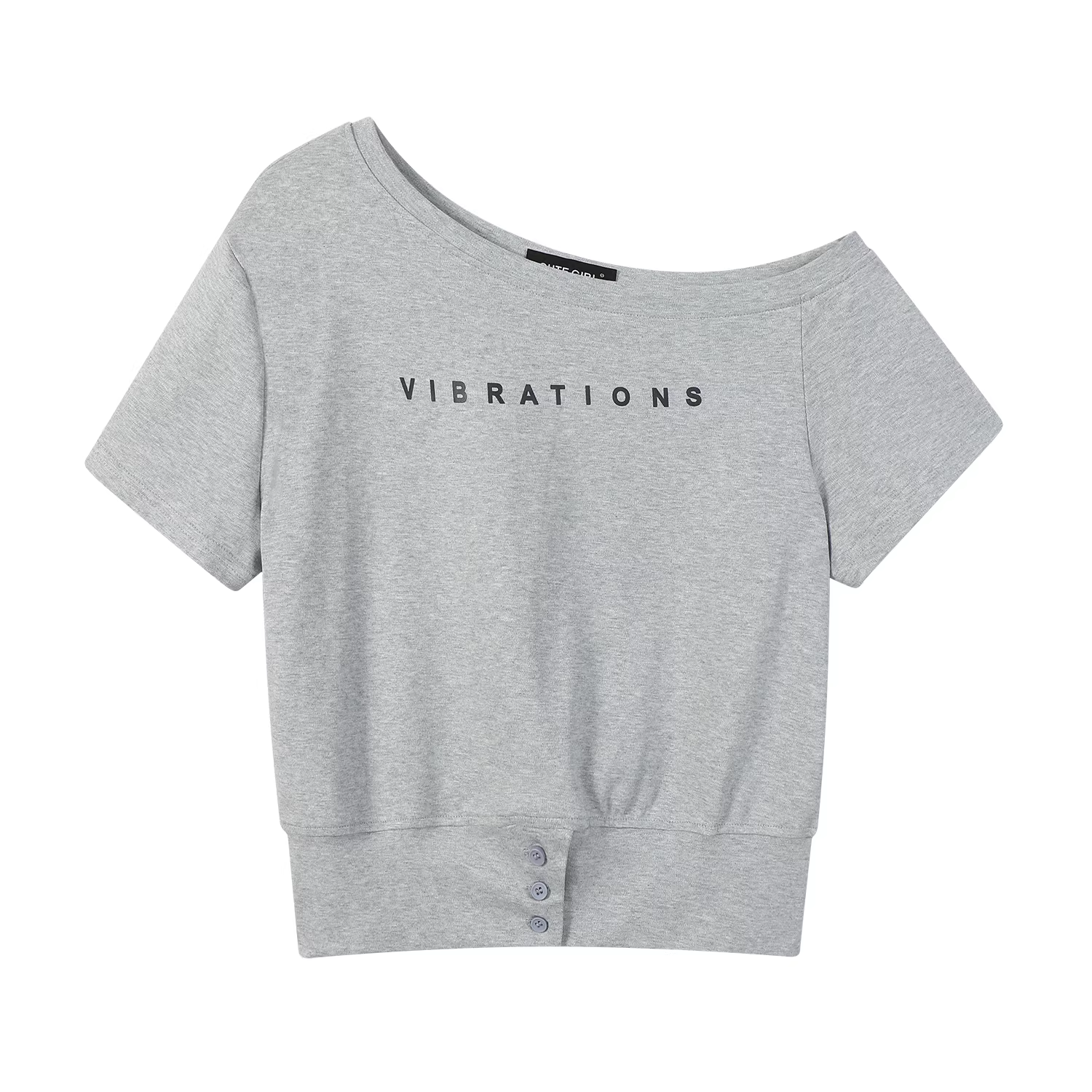 Áo thun ngắn tay lệch vai in chữ độc đáo và đẹp mắt theo phong cách Hàn Quốc dành cho nữ, áo công sở mùa hè đa năng