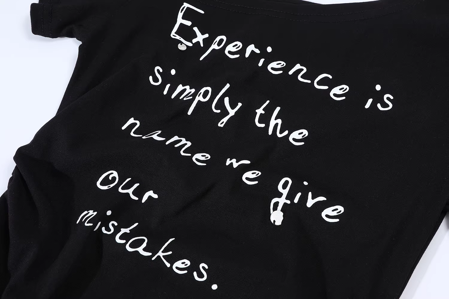 Áo thun ngắn tay lệch vai phong cách Hàn Quốc in chữ màu xanh dành cho nữ mùa hè Áo xếp ly độc đáo ôm eo