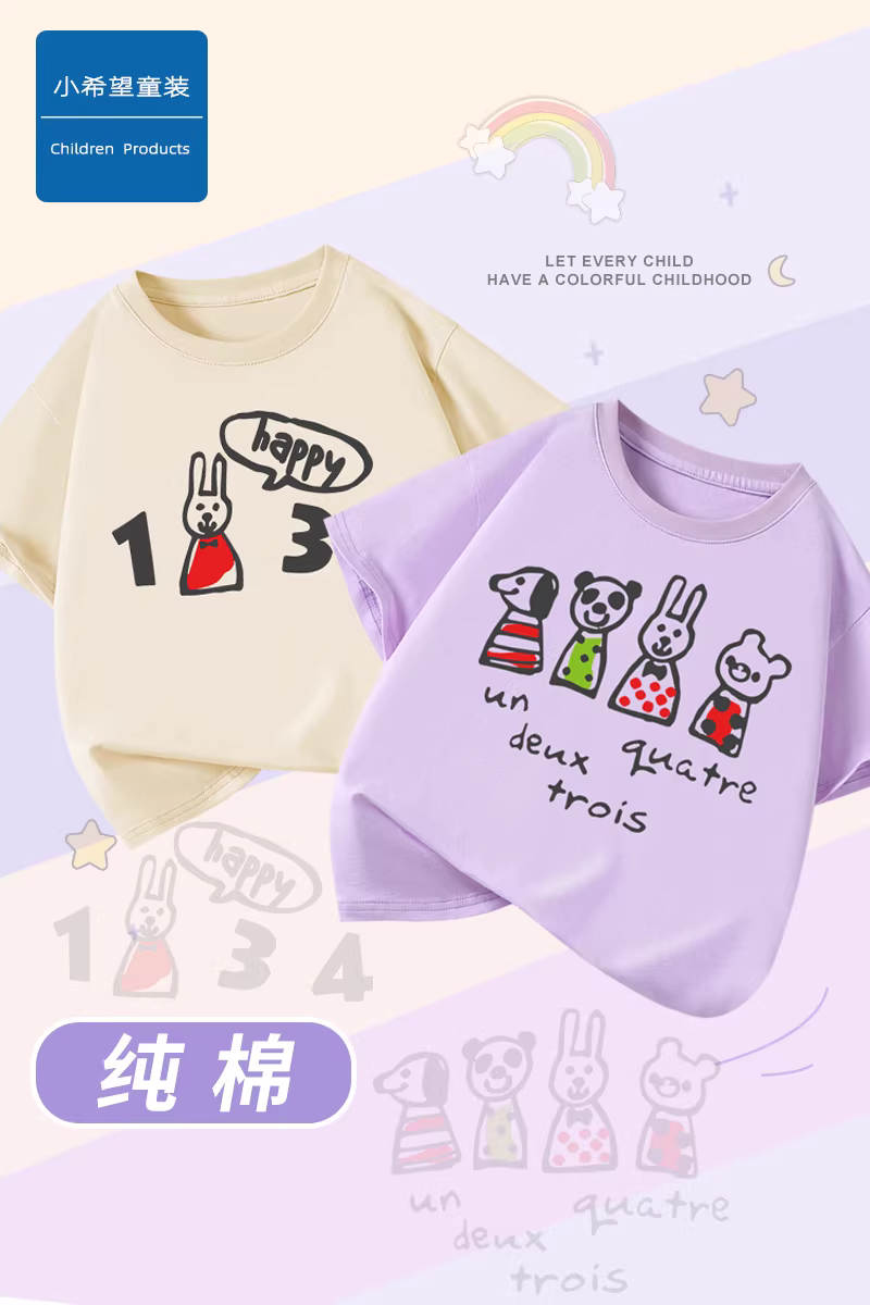 - Áo thun ngắn tay Little Hope dành cho bé gái, chất liệu cotton nguyên chất, mùa hè, thương hiệu thời thượng, dáng rộng, quần áo phong cách tươi mới dành cho bé gái, hợp thời trang.