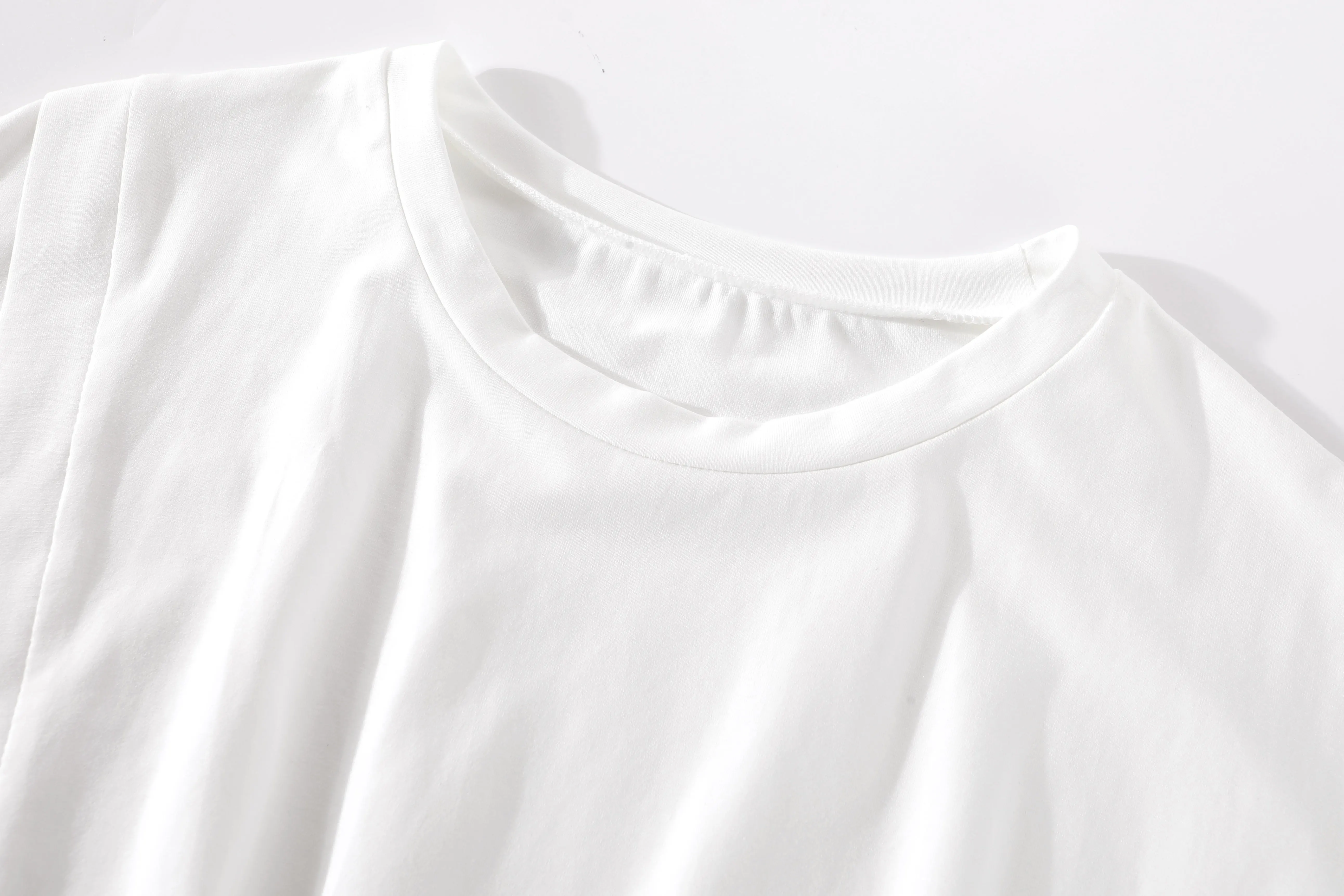 - Áo thun ngắn tay màu trắng xẻ tà bất đối xứng phong cách Hàn Quốc dành cho nữ mùa hè thời trang mới cổ tròn xếp ly