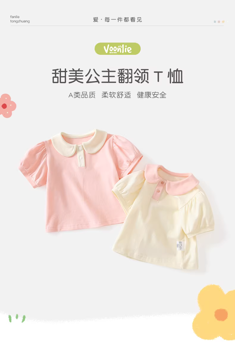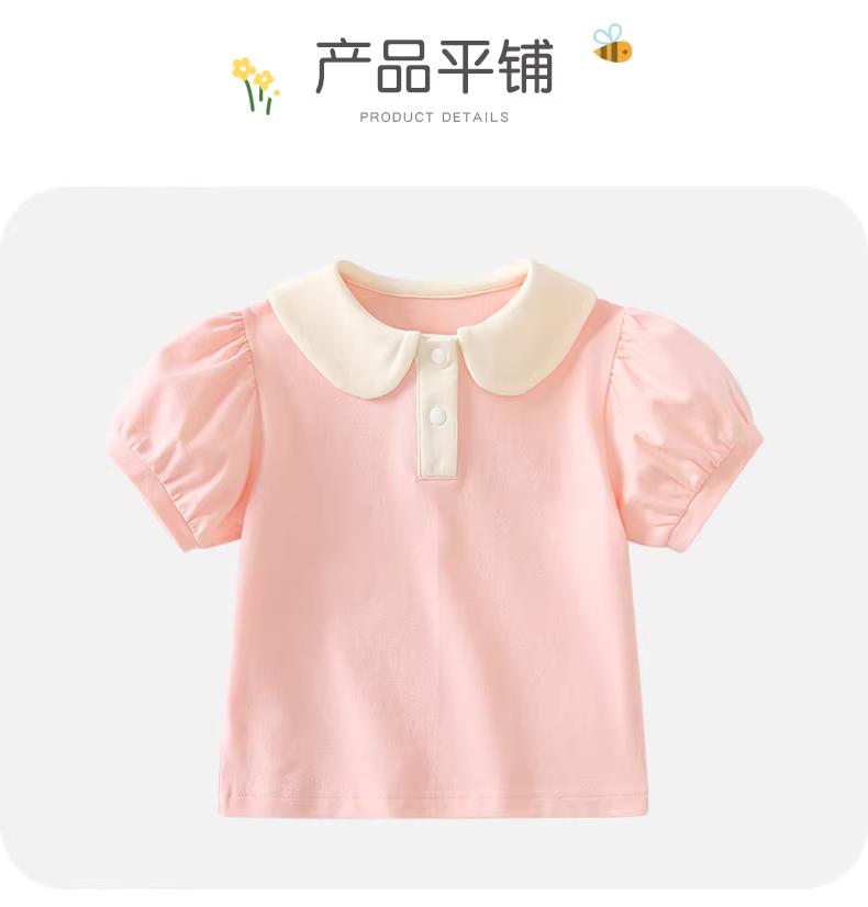 - Áo thun ngắn tay mùa hè cho bé gái 2025 kiểu dáng mới thời trang đa năng, áo polo bé gái mùa hè