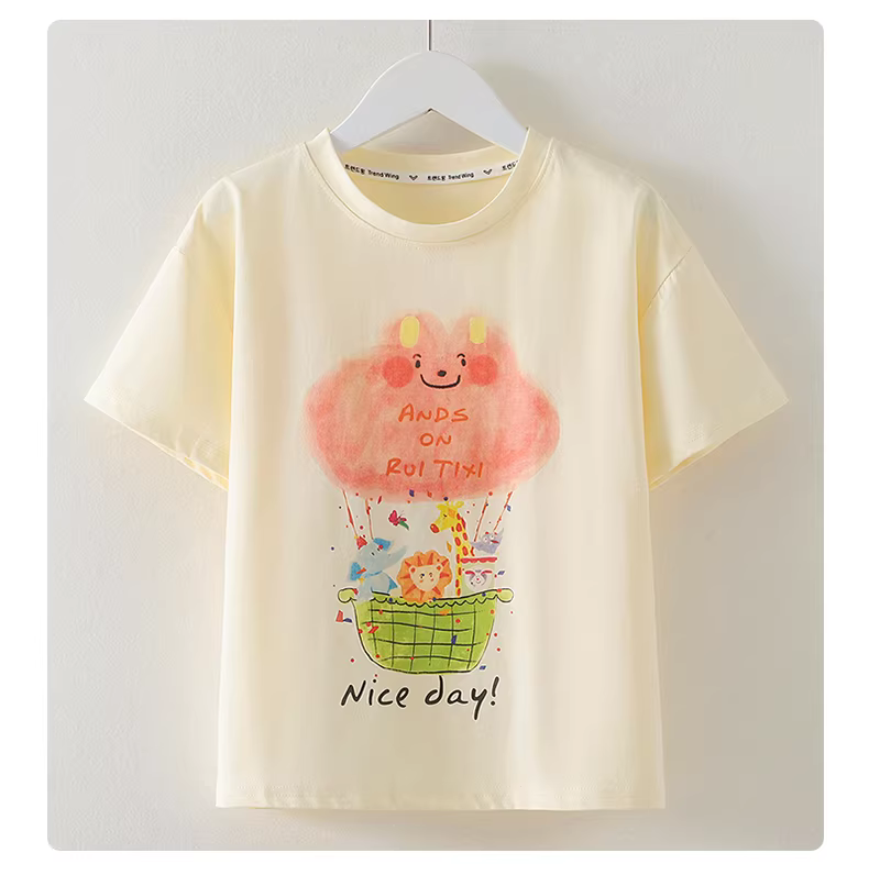 - Áo thun ngắn tay mùa hè dành cho bé gái, áo dáng rộng giản dị sành điệu dành cho bé gái, quần áo mùa hè mỏng nửa tay in họa tiết dành cho bé gái lớn tuổi