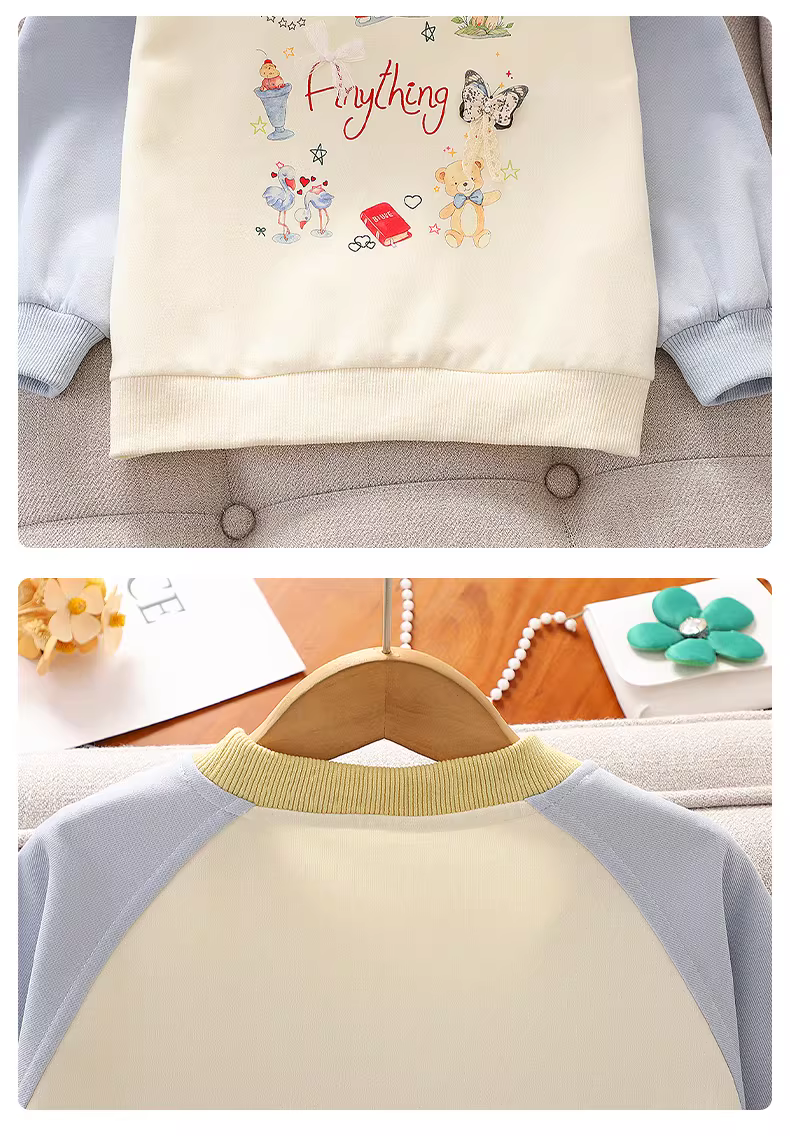 - Áo thun nỉ bé gái mùa thu kiểu mới 2025, áo bé gái rộng rãi đa năng, áo len bé gái mặc xuân thu