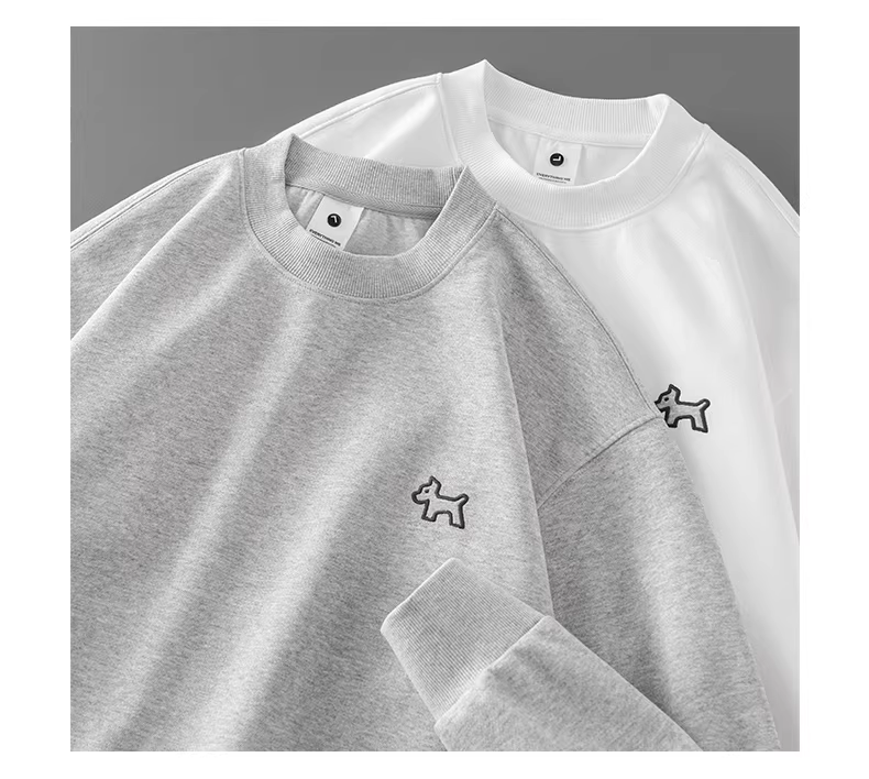 Áo thun nỉ cổ tròn nam 400G, kiểu dáng Mỹ mùa thu, thêu hình chó thời thượng, áo lửng rộng tay dài màu xám