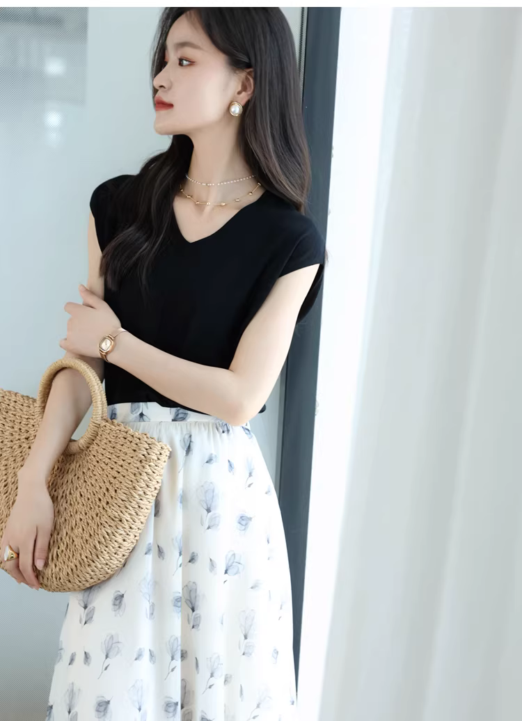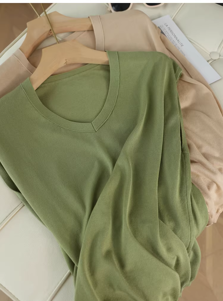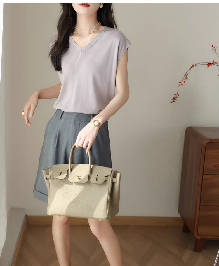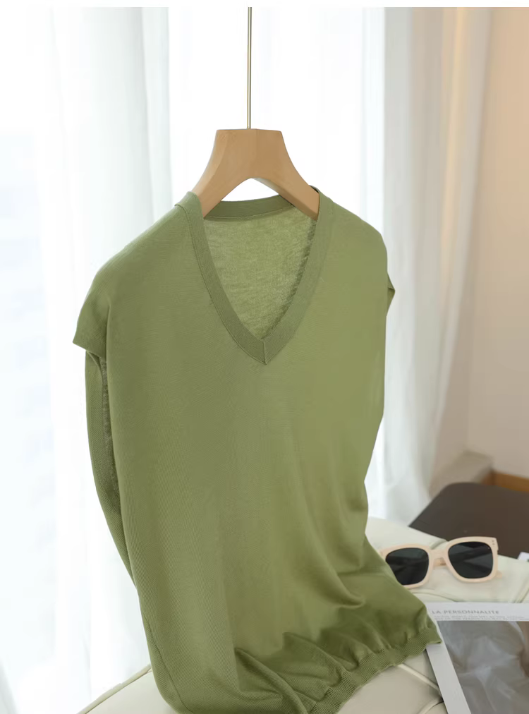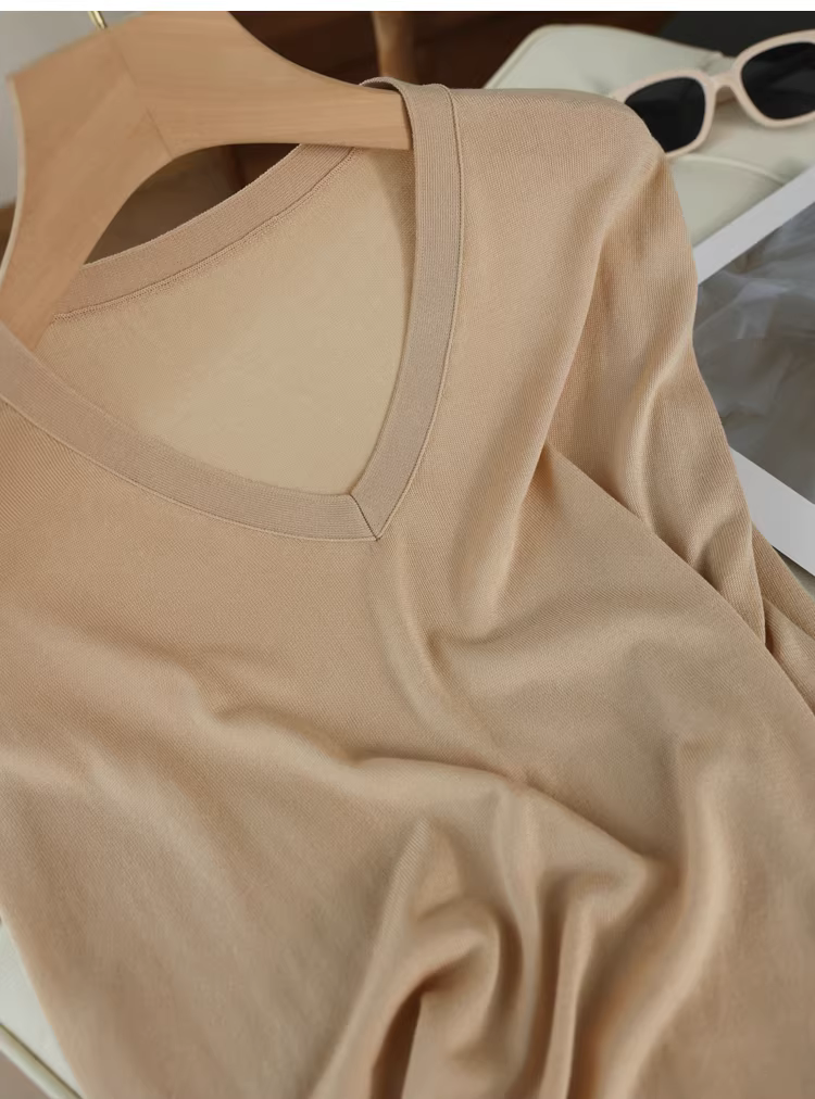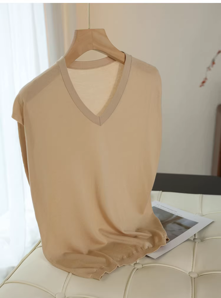 - Áo thun nữ cao cấp chất liệu Tencel mát mẻ, dáng ôm, cổ chữ V, không tay, kiểu dáng ngắn, mới cho mùa hè.