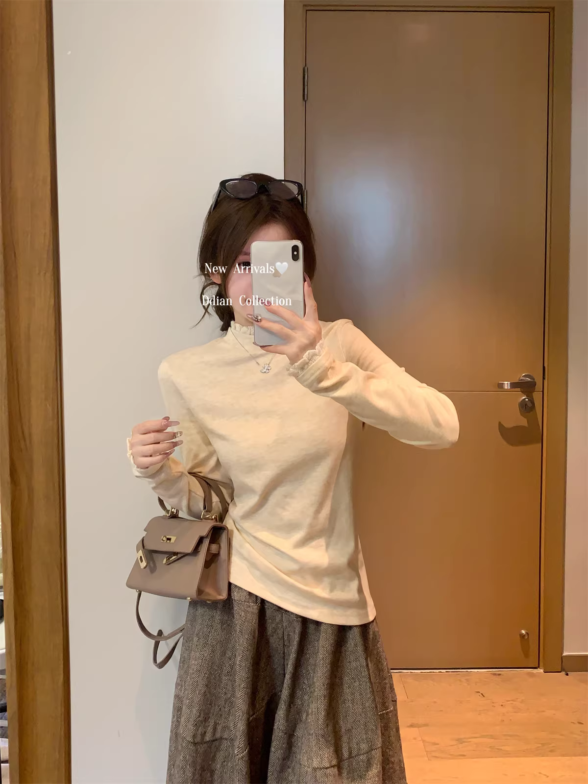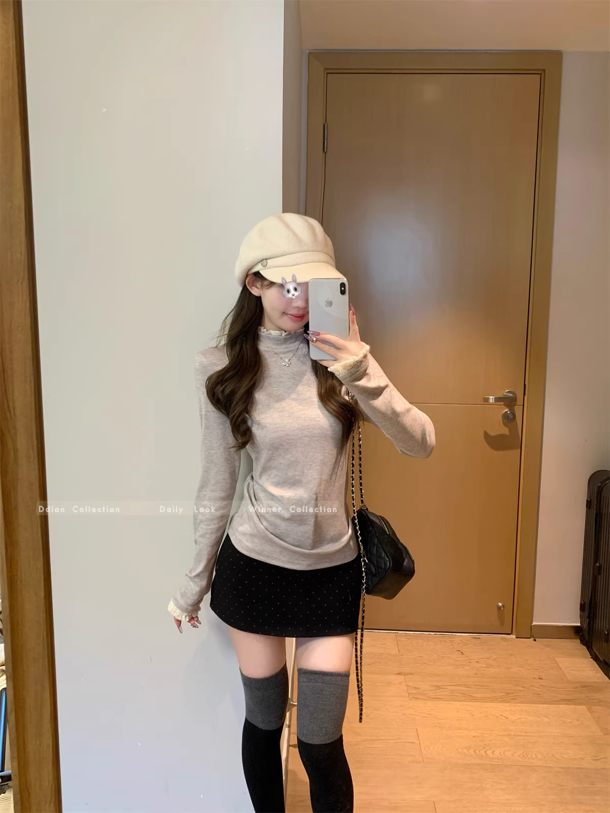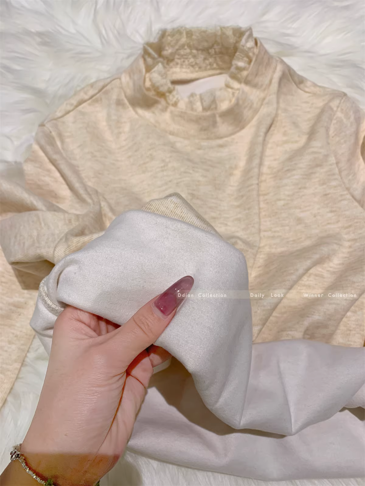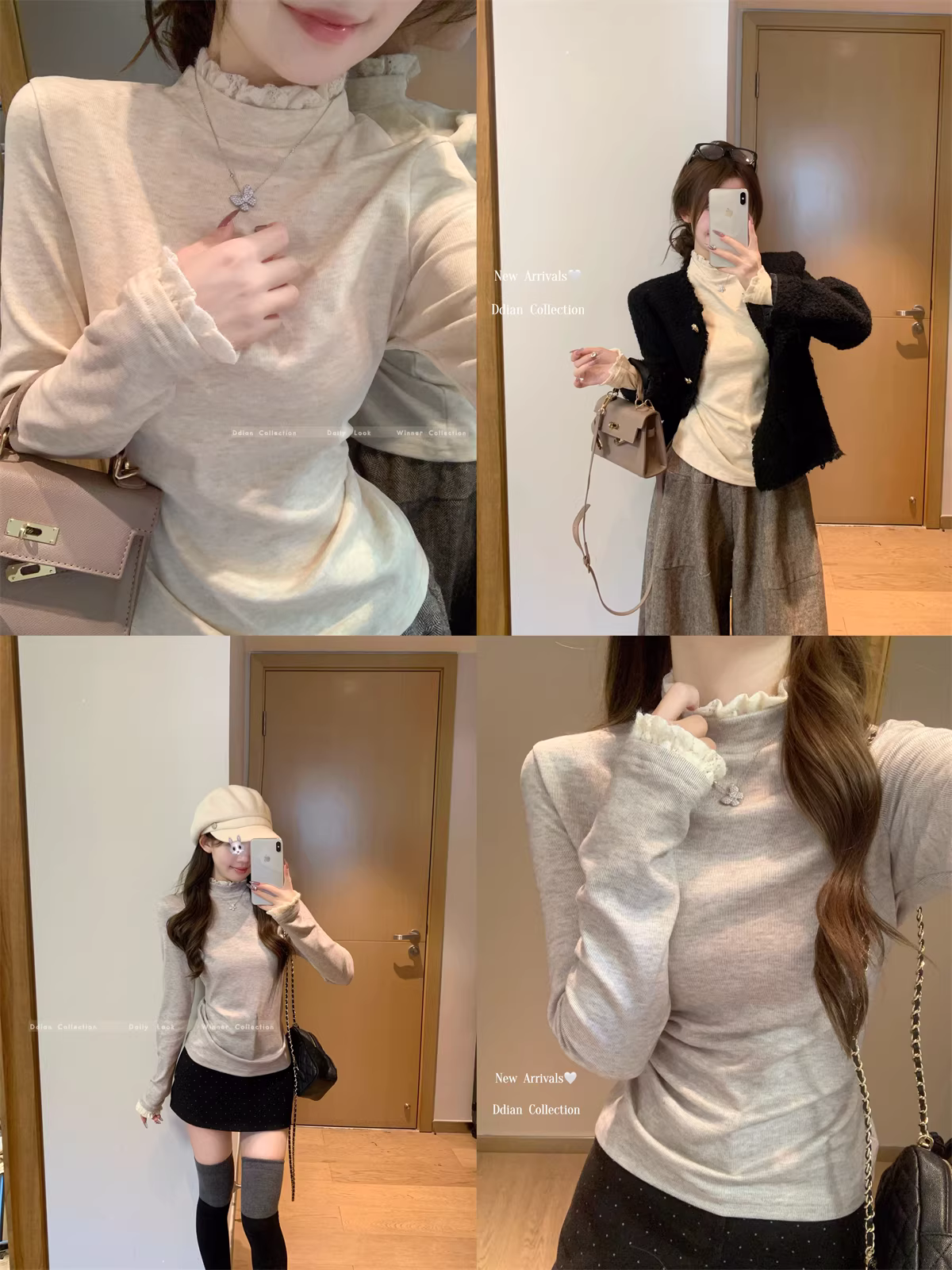 - Áo thun nữ La Chapelle cổ nửa cao, tay dài, ren, kiểu dáng ôm body, size nhỏ, mùa thu đông 2025.