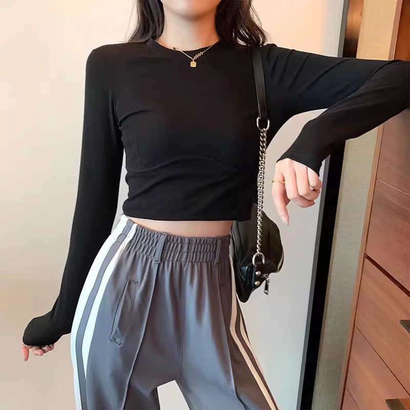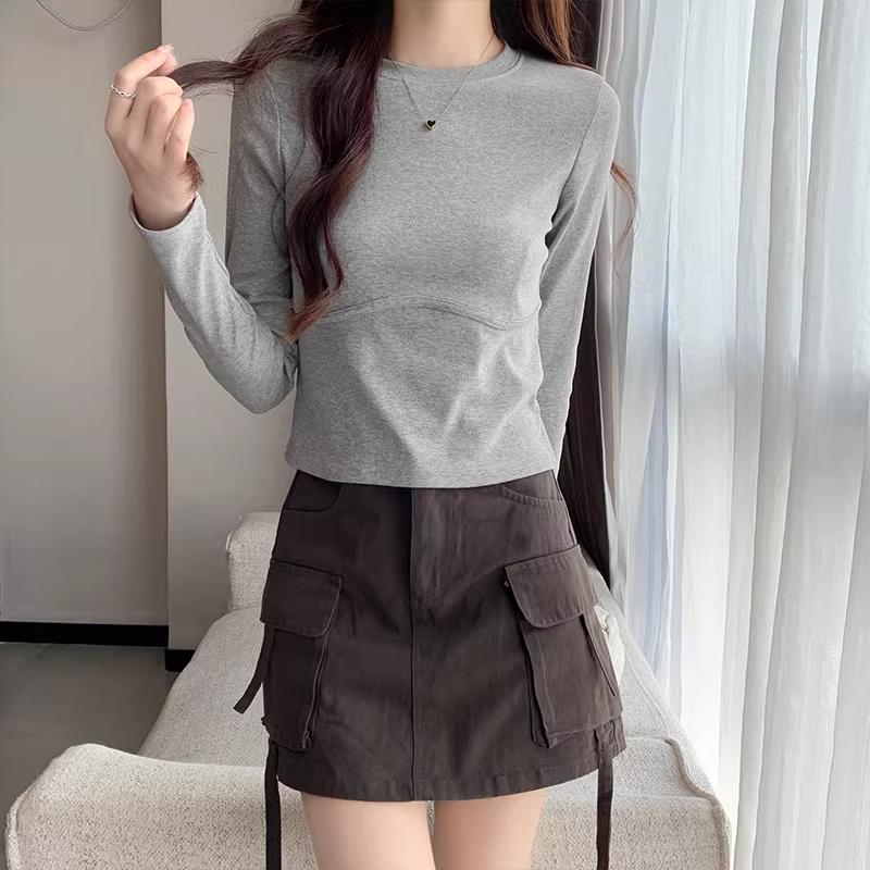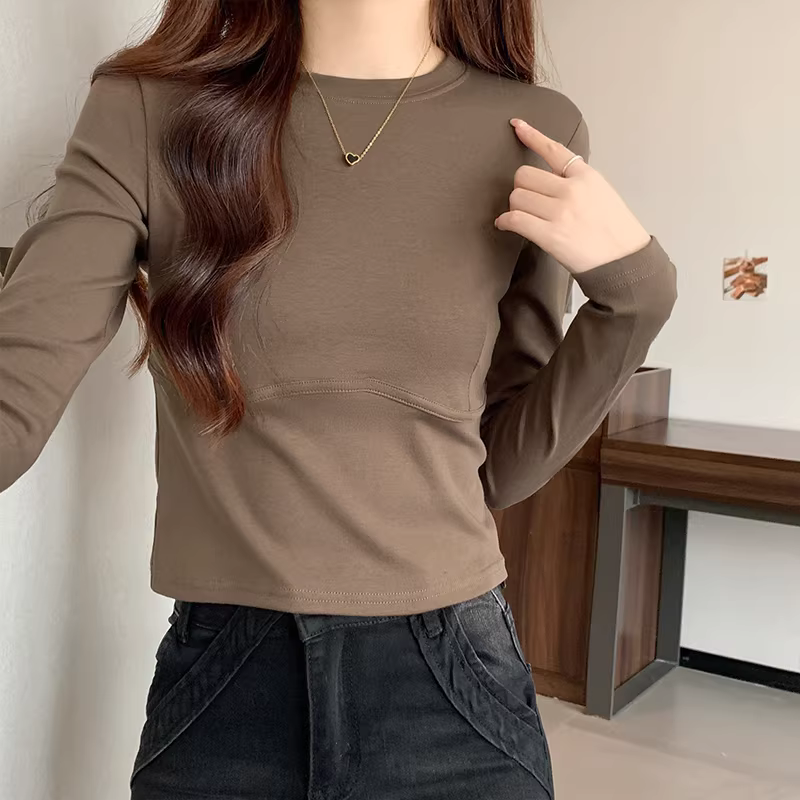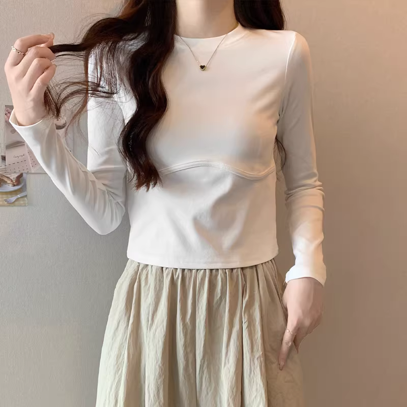 Áo thun nữ La Chapelle màu trắng, tay dài, cổ tròn, kiểu dáng regular, mặc lót trong, mùa thu mới 2025
