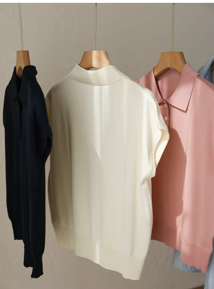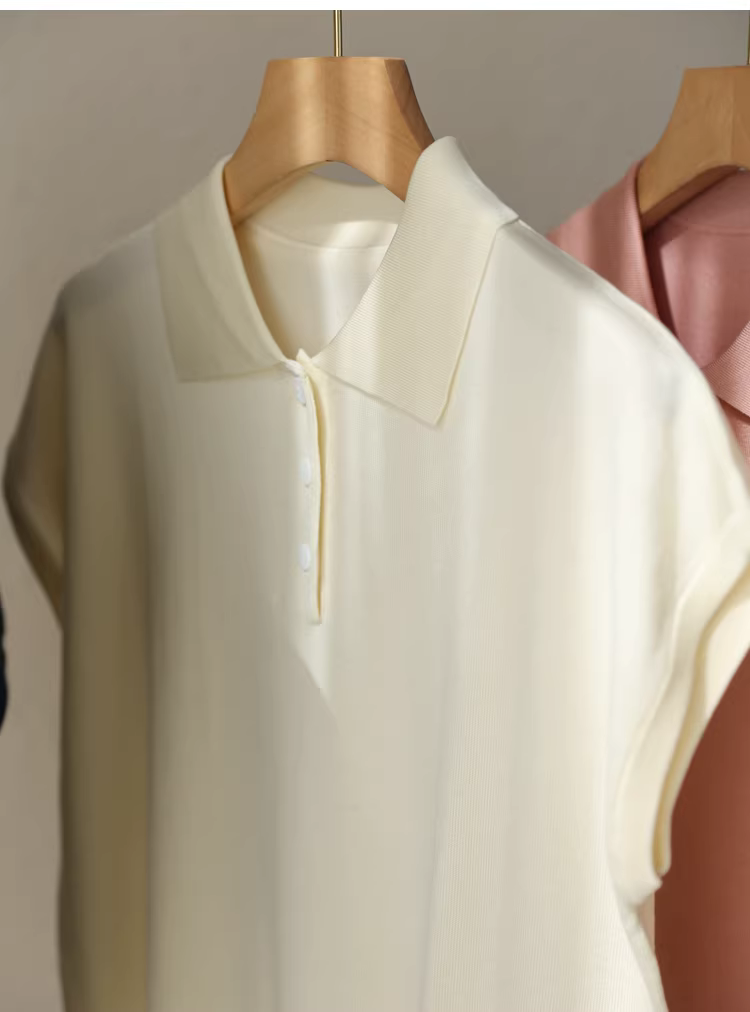 - Áo thun nữ tay ngắn kiểu dáng ôm dáng, chất liệu 100% lyocell, cổ polo, tay phồng rộng, kiểu dáng mùa hè mới
