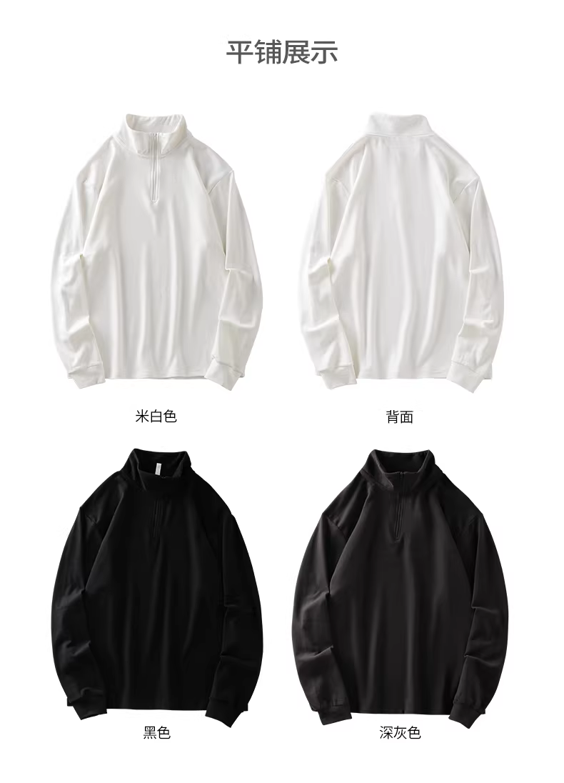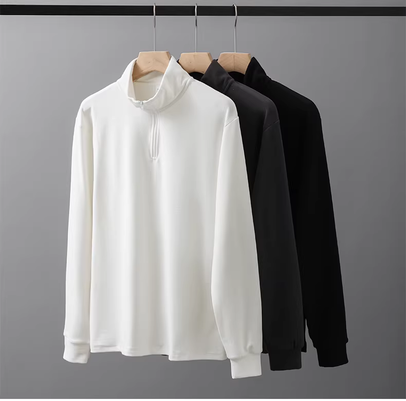 Áo thun nửa khóa kéo giữ nhiệt hai mặt dành cho nam, dài tay, mùa thu đông, ấm áp, lót lông cừu, áo len cổ đứng, màu trắng tinh khiết, áo lót bên trong.