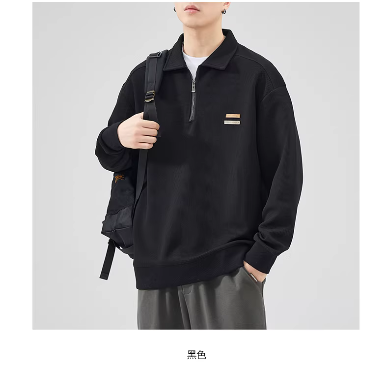 - Áo thun polo chất liệu vải waffle dày 420G dành cho nam, áo khoác dáng rộng cổ trụ nửa khóa kéo tay dài, kiểu dáng thời trang thu mới.
