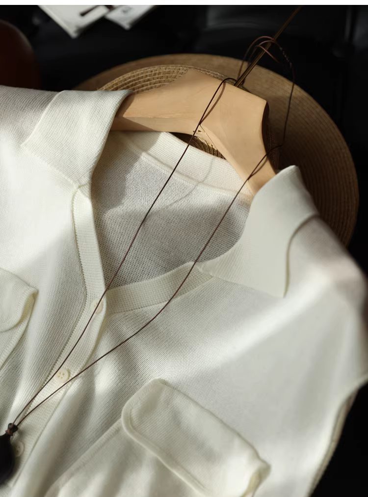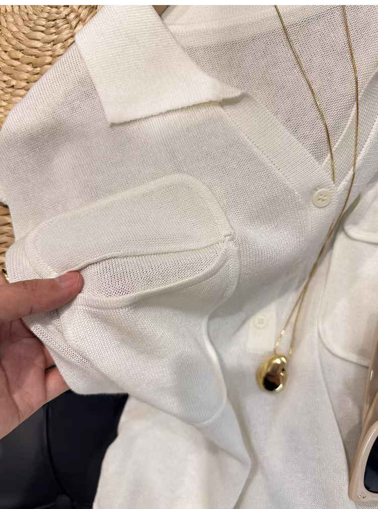 - Áo thun polo cổ rộng chất liệu linen lyocell thoáng mát, mỏng, cổ V, tay sát nách, có túi dành cho nữ mùa hè
