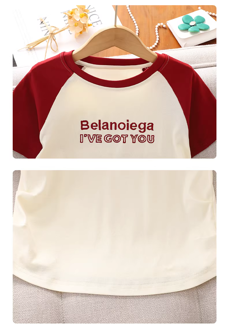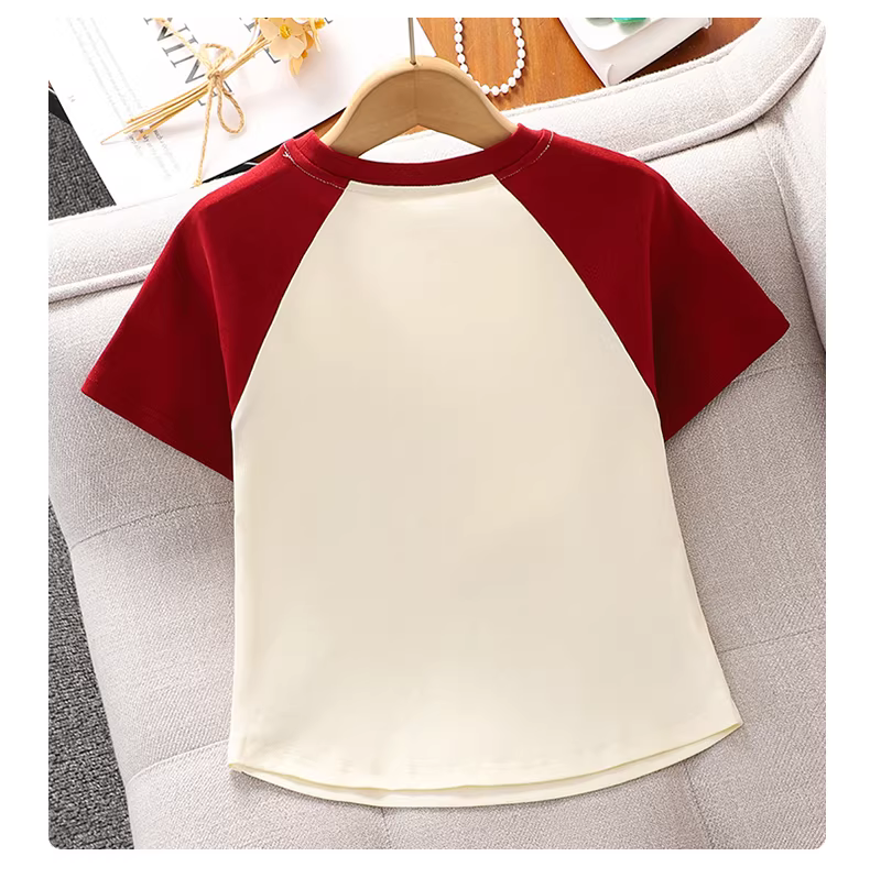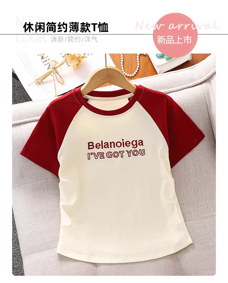 - Áo thun tay ngắn mùa hè kiểu dáng thời trang cho bé gái, kiểu dáng ôm sát, tay raglan, chất liệu mỏng, mặc thường ngày mùa hè, áo kiểu ôm sát cho bé gái