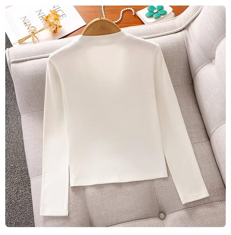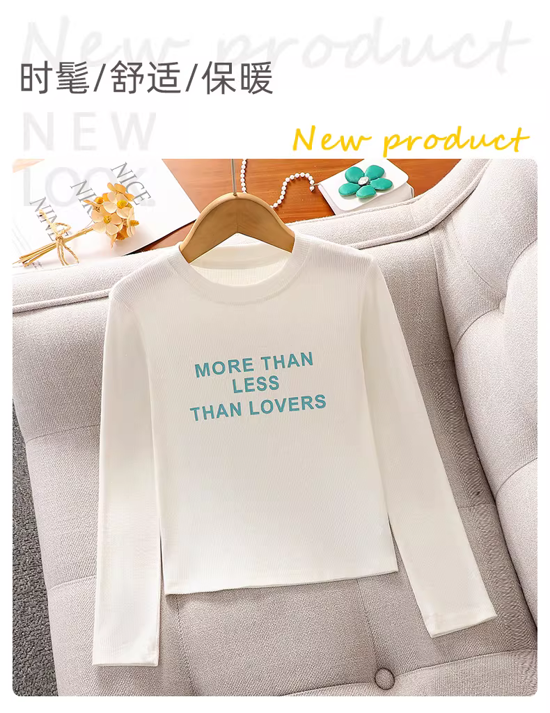 - Áo thun trắng bé gái kiểu mới xuân thu 2025, dáng ôm, tay dài, áo thun mùa thu thường ngày cho bé gái lớn tuổi
