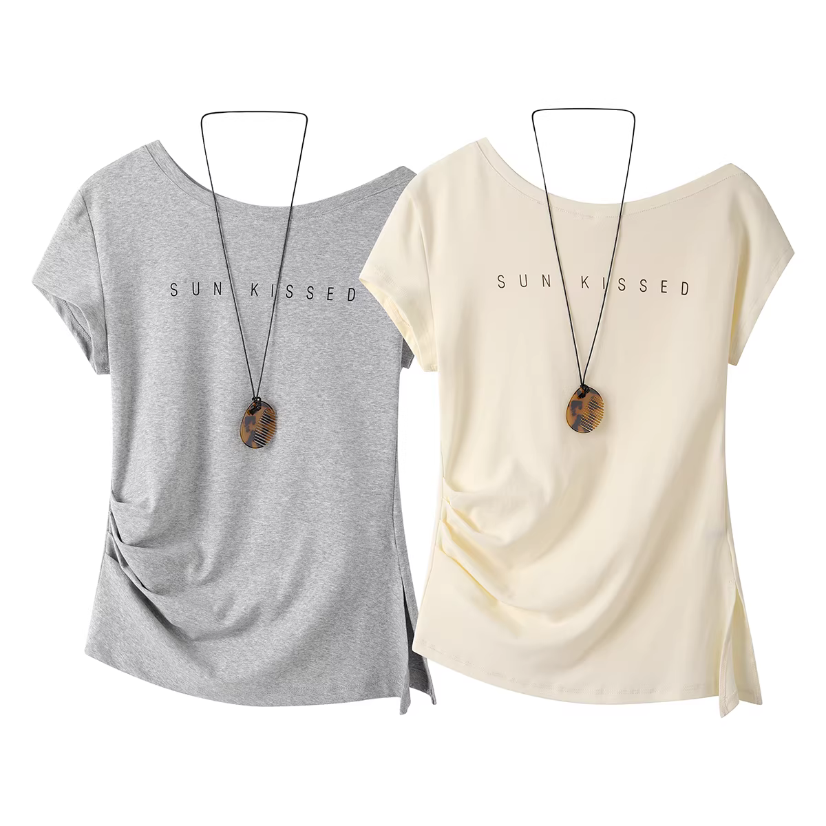 - Áo thun xẻ tà không đều phong cách NSROU dành cho nữ, áo ngắn tay đa năng mùa hè, kiểu dáng trễ vai ngọt ngào và cay cay