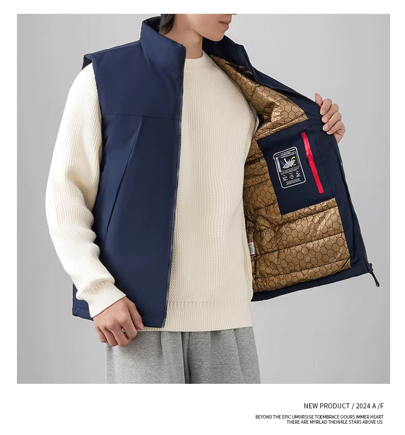 Áo vest cotton graphene cho nam, kiểu mới mùa đông 2024, tự sưởi ấm, ấm áp, dày dặn, áo khoác ngoài, áo vest cổ đứng.