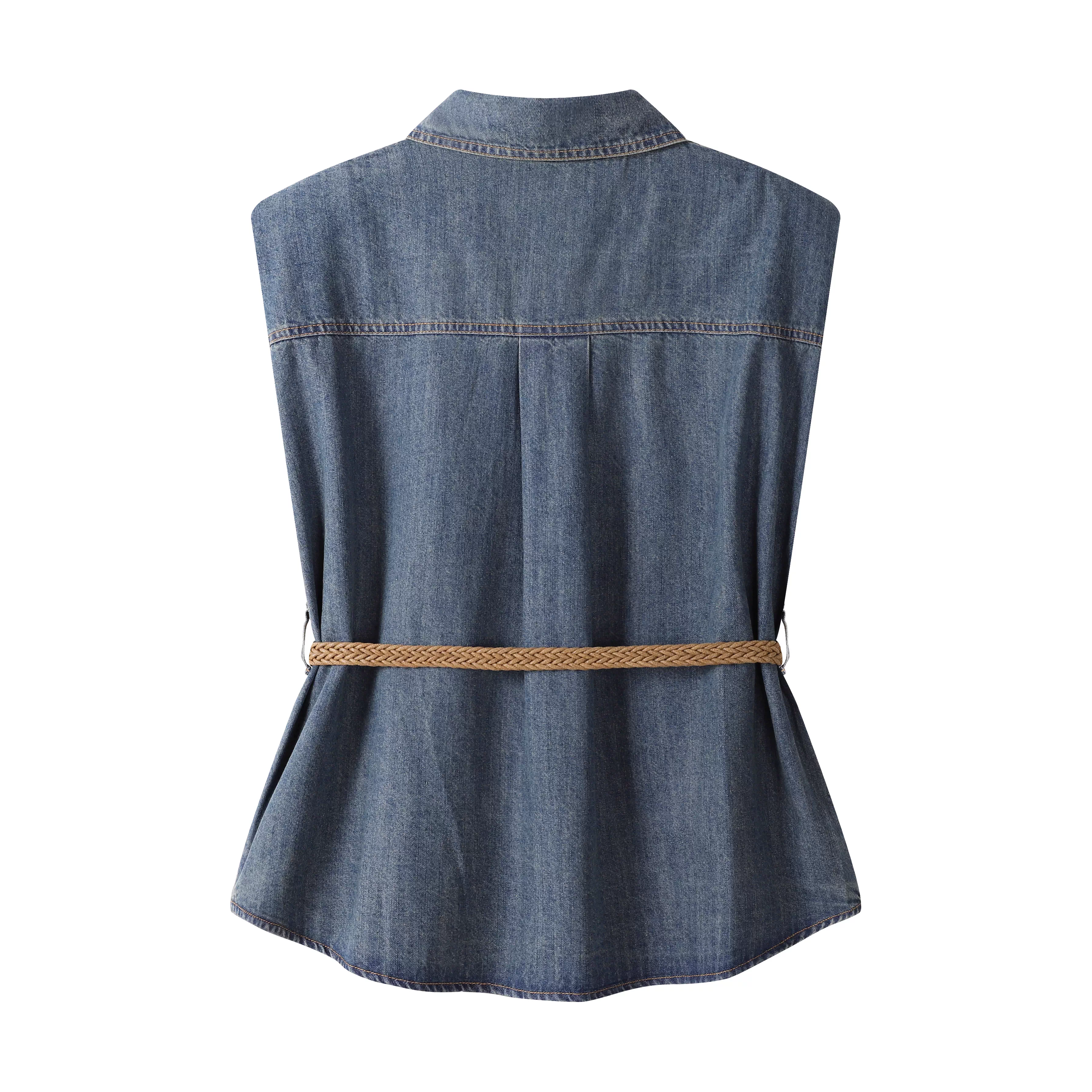 - Áo vest denim không tay kiểu Hàn Quốc thanh lịch kiểu Hàn Quốc dành cho nữ mùa hè kiểu Hồng Kông kiểu cổ điển thắt eo
