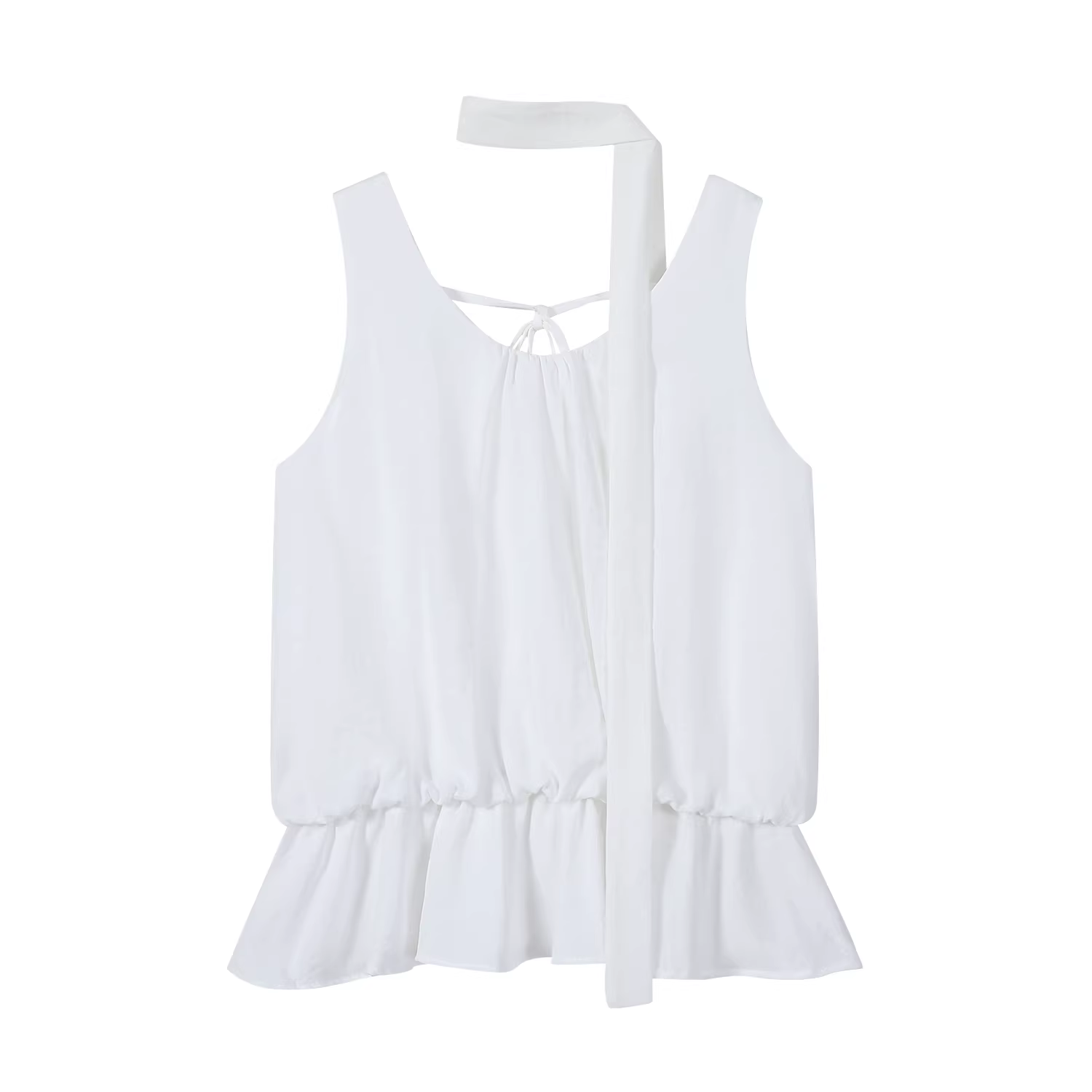 - Áo vest không tay màu xanh có dây buộc cổ kiểu Hàn Quốc dành cho nữ, áo buộc dây hở lưng độc đáo cho mùa hè.