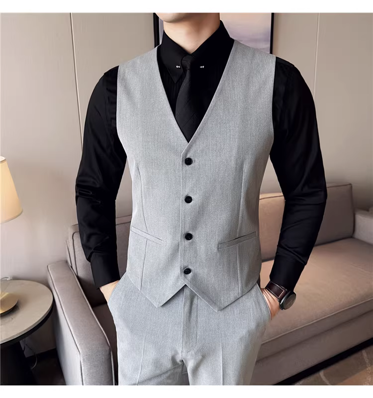 Áo vest nam cổ V, kiểu dáng thời trang ôm body, lịch lãm, thích hợp cho công việc, đám cưới, vest phù rể.