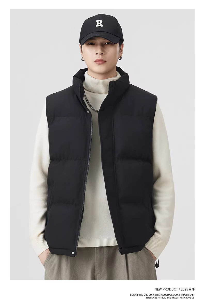 Áo vest nam mùa đông kiểu Mỹ dày dặn, ấm áp và chống lạnh, chất liệu cotton, cổ đứng, không tay.