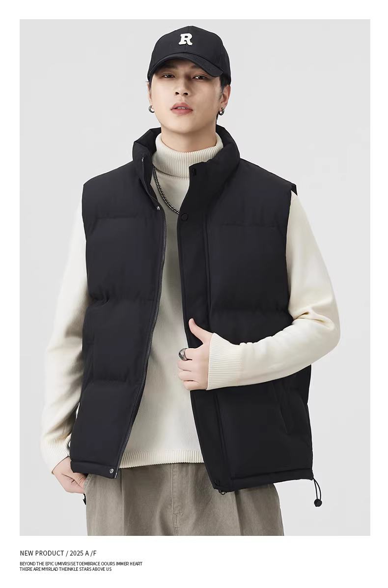 - Áo vest nam mùa đông kiểu Mỹ dày dặn, ấm áp và chống lạnh, chất liệu cotton, cổ đứng, không tay.