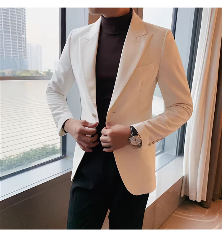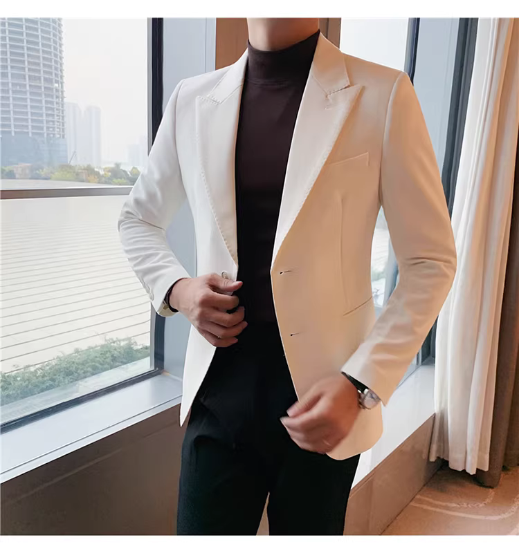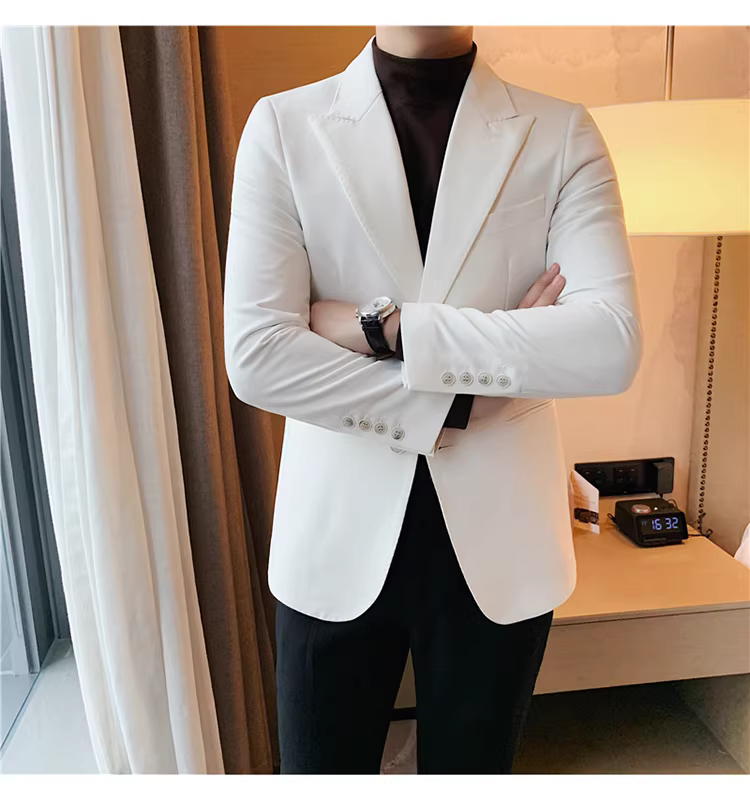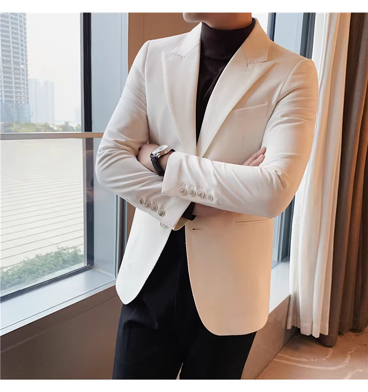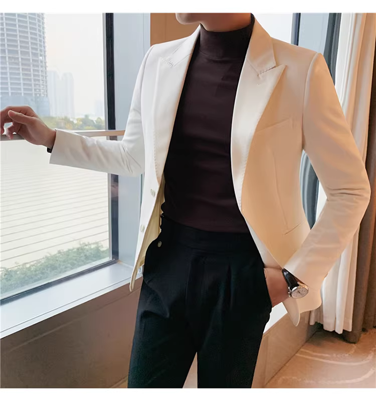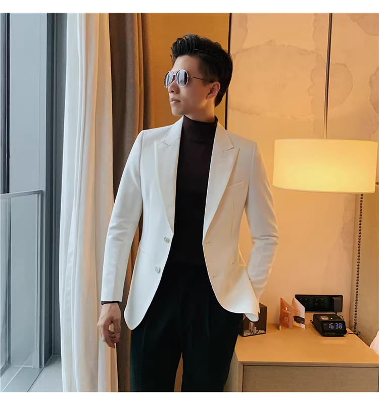- Áo vest trắng nam, kiểu mới xuân thu 2024, dáng ôm, áo đơn lịch lãm, bộ vest công sở thời thượng