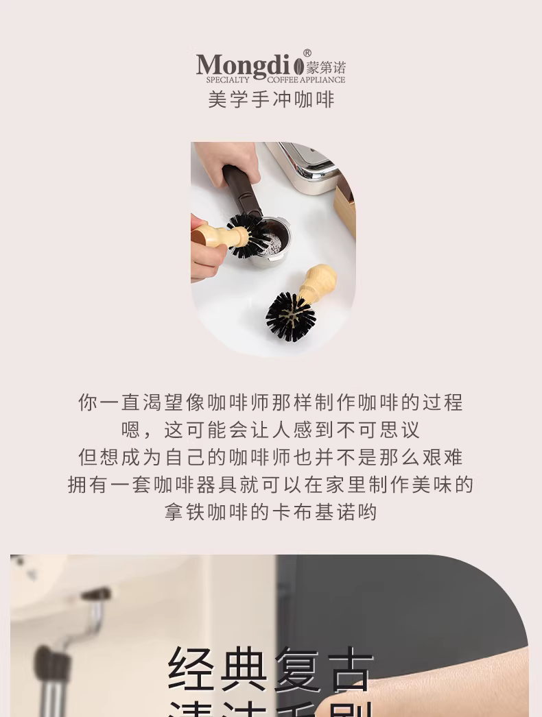 Bàn chải vệ sinh bát cà phê Mongdio, phụ kiện máy pha cà phê, dụng cụ vệ sinh tay cầm máy pha cà phê, đa năng 51/58mm