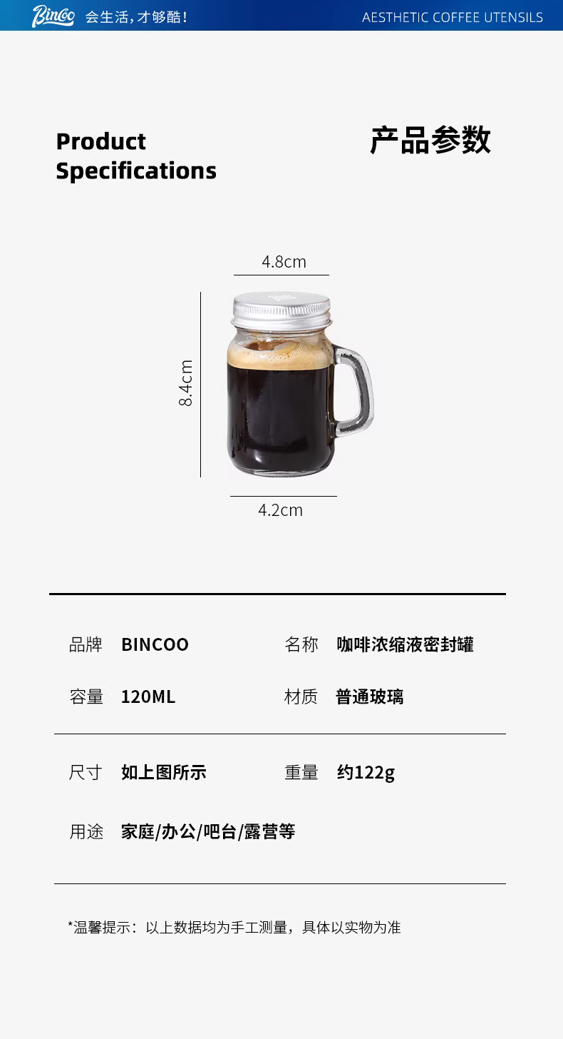 Bình đựng cà phê cô đặc mini Bincoo, chất lỏng nguyên bản, lọ thủy tinh kín, cốc nước, bình đựng di động, cốc chiết xuất