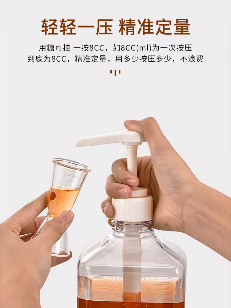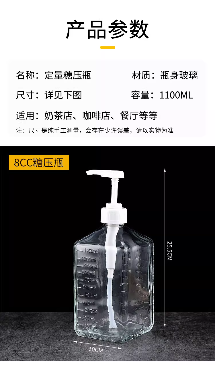Bình đựng siro thủy tinh cho quán trà sữa tự chọn, bơm siro, bình đựng fructose ép tay, 8cc