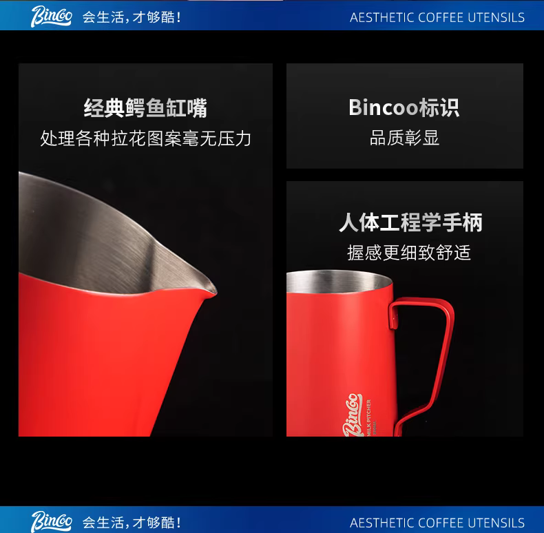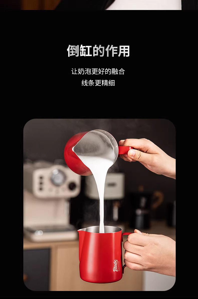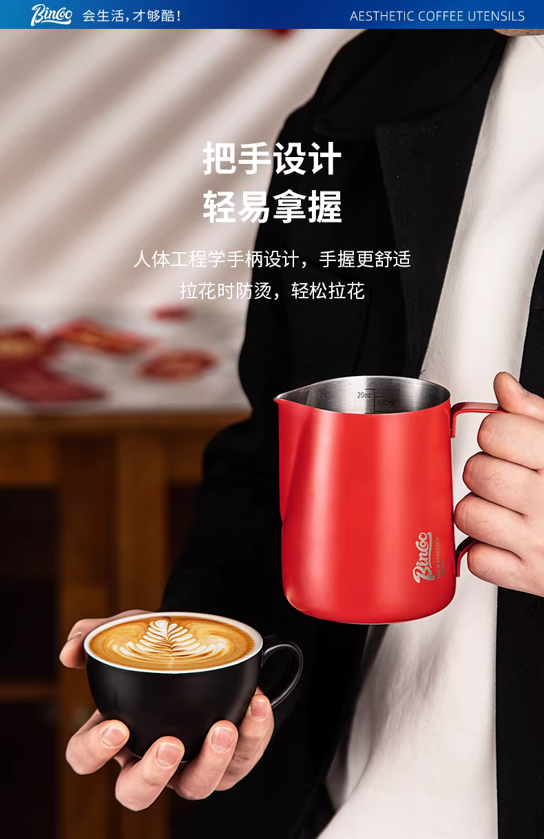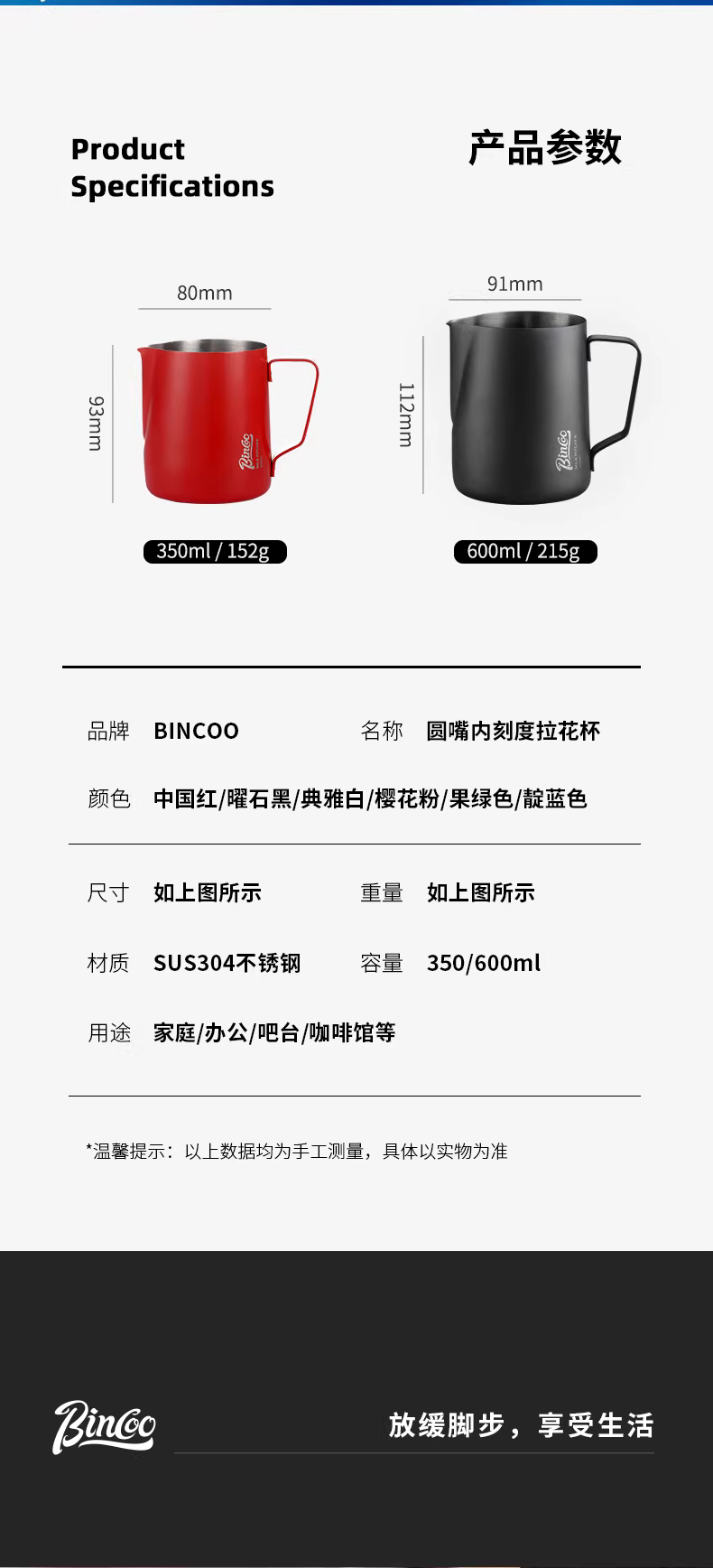 - Bình pha cà phê latte bincoo có vòi tròn nhọn, bình tạo bọt sữa có vạch chia, cốc tạo bọt sữa bằng thép không gỉ, dụng cụ tạo bọt sữa latte.