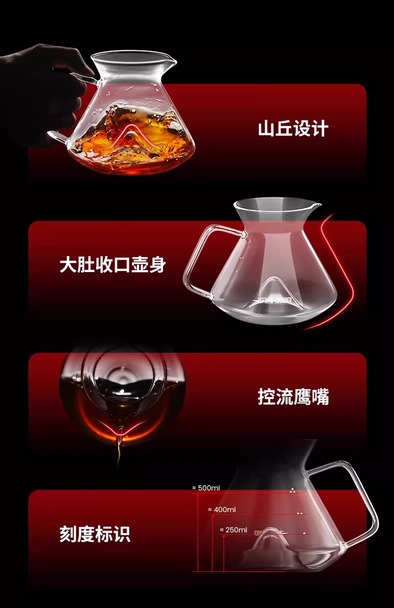 Bình pha cà phê thủ công MHW Bomber Hill Sharing Pot có vạch chia độ, dụng cụ pha cà phê bằng kính