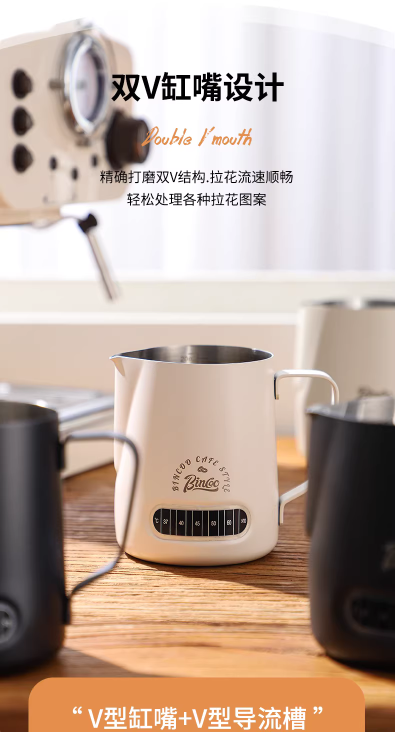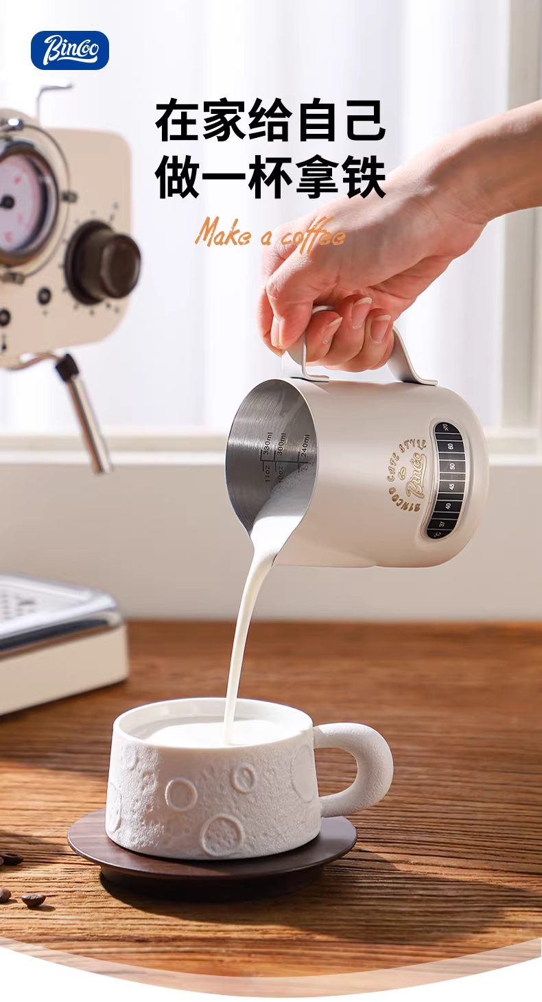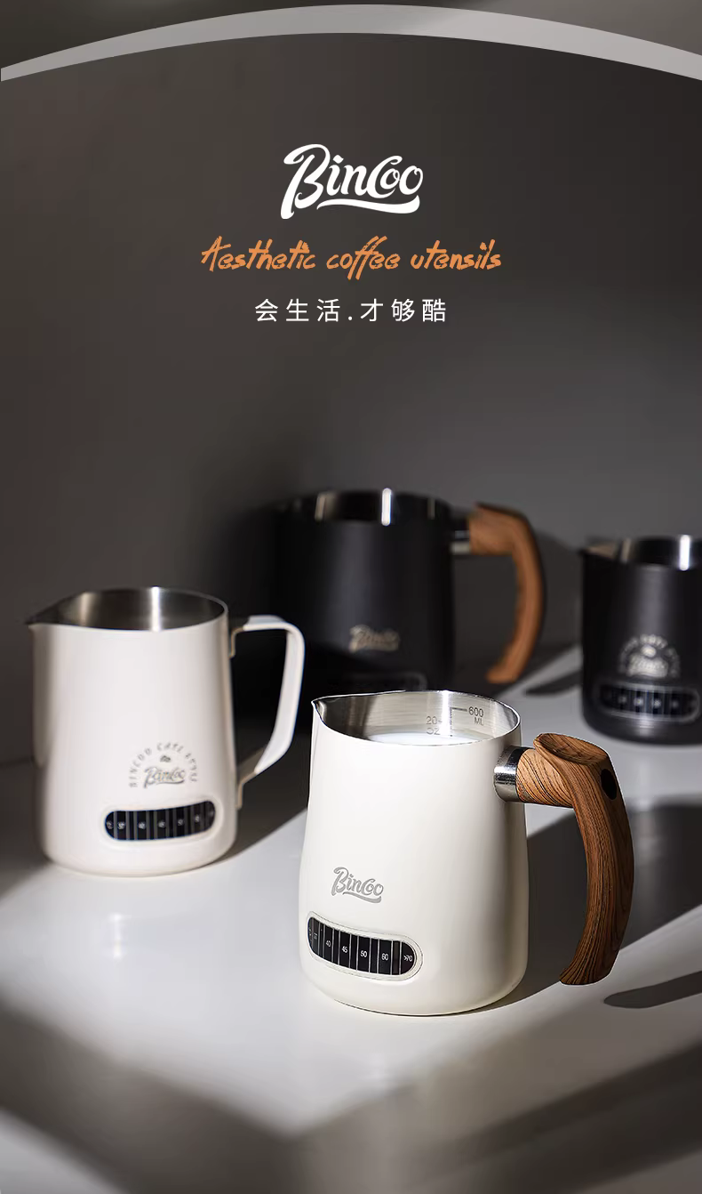 - Bình tạo bọt sữa bằng thép không gỉ Bincoo có vạch chia, vòi nhọn, dung tích 400/600ml, dùng để tạo bọt sữa cà phê, tạo bọt sữa